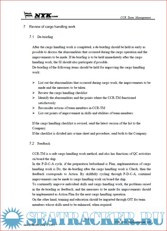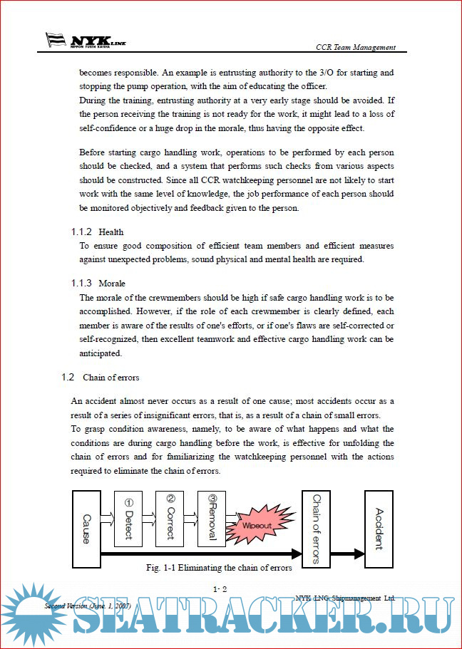 Year: 2006 Language: english Author: NYK Line Genre: Reference book Format: PDF Quality: eBook Pages count: 71 Description: CCR Team Management is a practical work method to confirm every single work by multiple persons so as to prevent problems in cargo handling attributed to human error. Bridge Team Management has been established as a practical technique for safe navigation. Bridge Team Management is not a general concept, but is a work method to evaluate requirements to ensure safety of navigation that incorporates a system to suit these requirements.