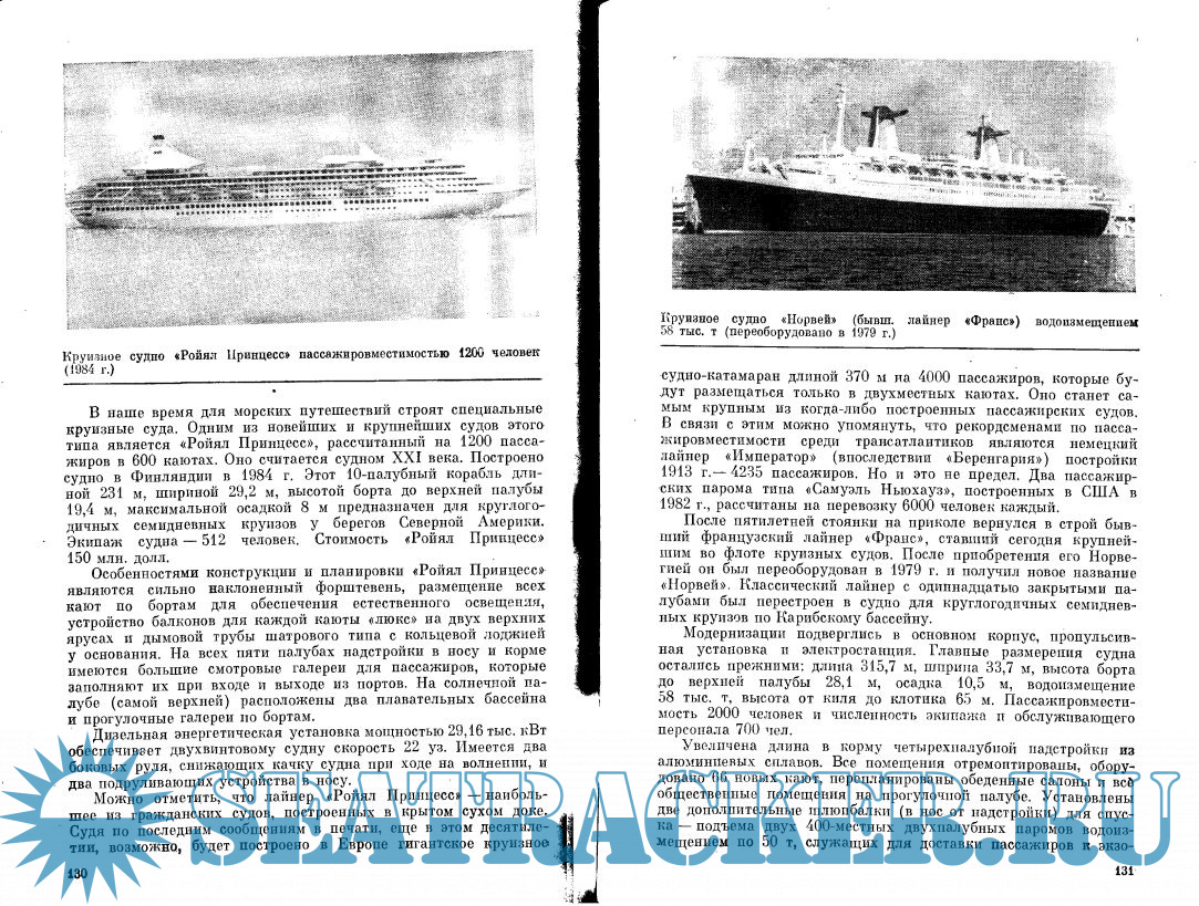 Описание: В книге в популярной форме рассказано о самых больших гражданских судах и боевых кораблях различных типов и назначений, начиная с древнейших времен и кончая 80-ми годами нашего столетия. Показано, как рост международного товарообмена и морских вооружений, изобретение механического двигателя и гребного винта, замена дерева железом, а железа сталью, развитие морского оружия и т. д. обусловили создание судов новых типов и появление в тот или иной период кораблей-гигантов.