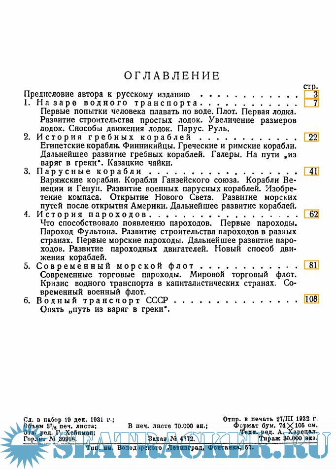 Описание: Задачей этой книги является ознакомить широкие массы с историей развития корабля, показать что водный транспорт не знал и не знает каких-то постоянных форм. Так же, как и во всем, что существует, в водном транспорте непрерывно все изменяется, развивается, преодолевая противоречия собственного развития.