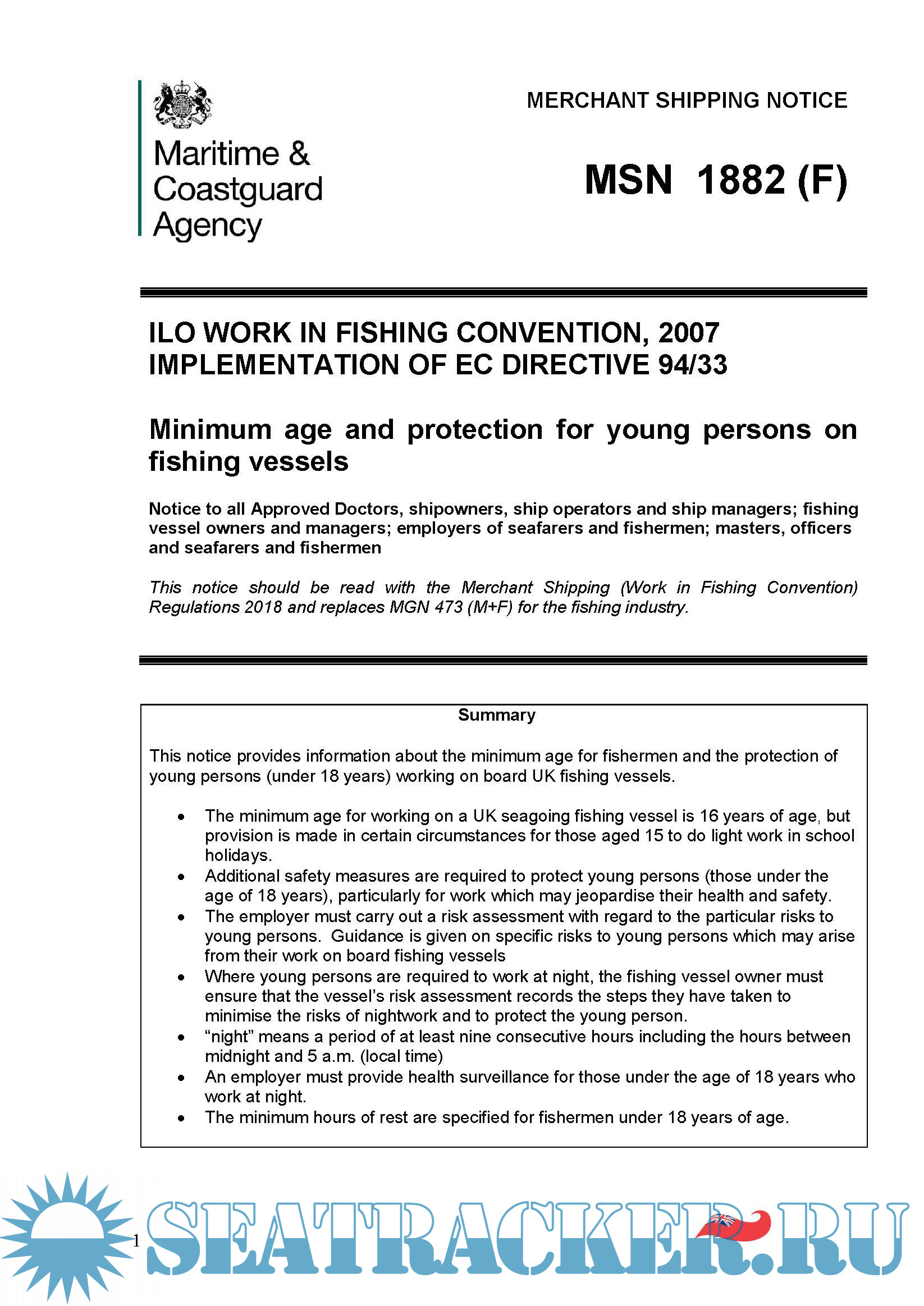 MSN (F)1882, 1884, 1885,1891 – ILO work in fishing convention minimum age, working time, survey and inspection, list of crew