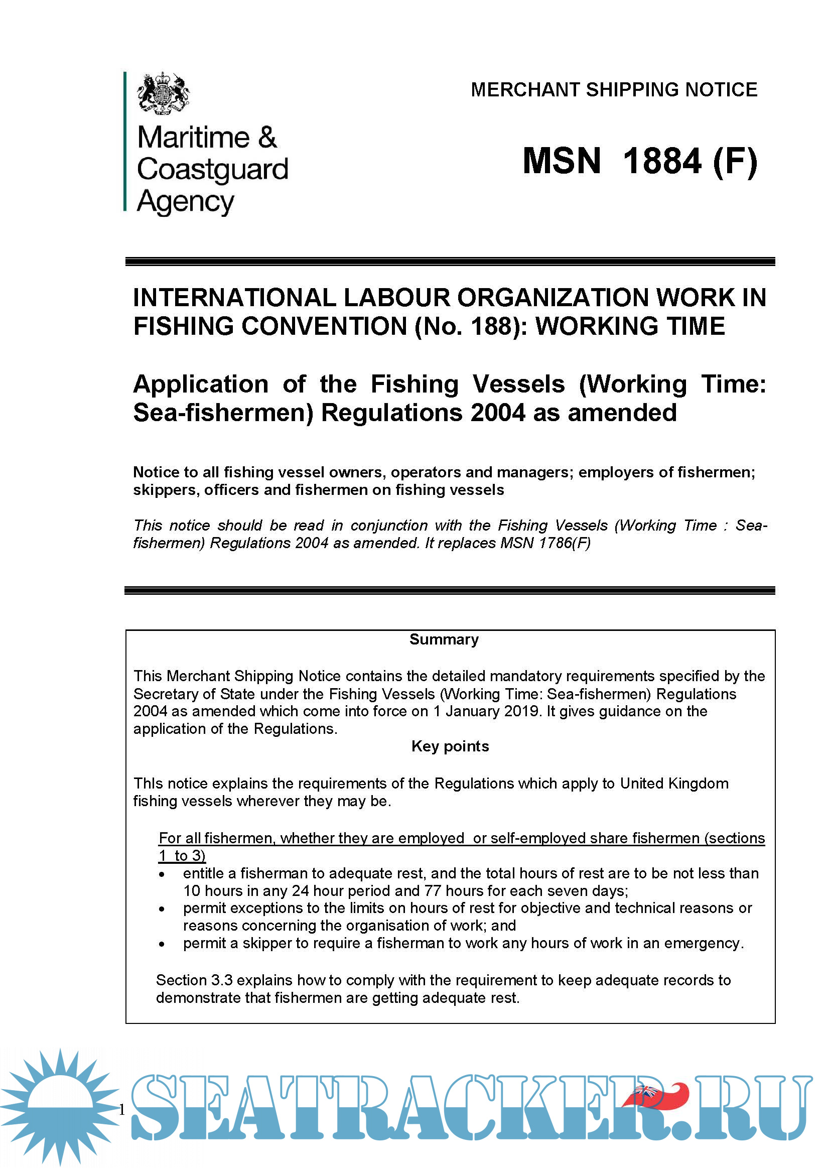 The Fishing Vessels (Working Time: Sea-Fishermen) Regulations 2004 (referred to in this notice as “the Regulations”), have been amended to bring them fully into line with the International Labour Organisation’s Work in Fishing Convention 2007 No. 188 (“ILO 188”). This extends the requirements for minimum rest to all fishermen, regardless of their employment status. The Regulations also implement Directive 2003/88/EC (the Working Time Directive) in so far as it applies to fishermen.