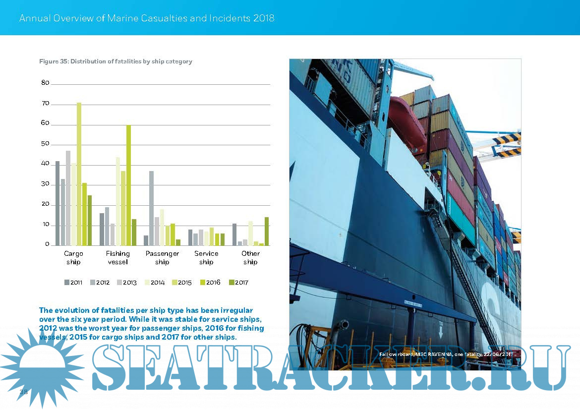 ferries. While no ships were lost in 2017, the number of fatalities has also