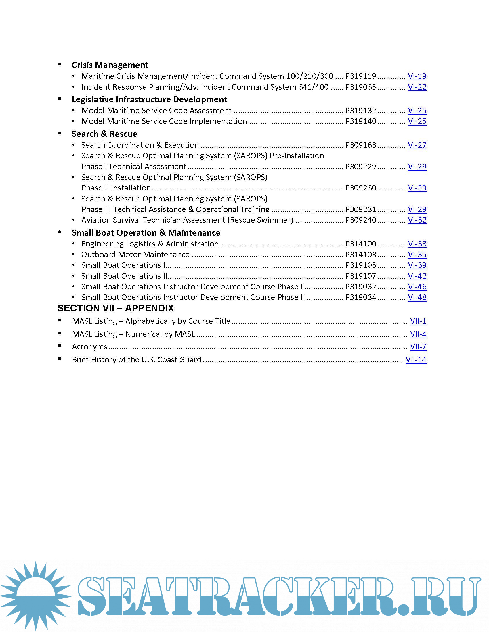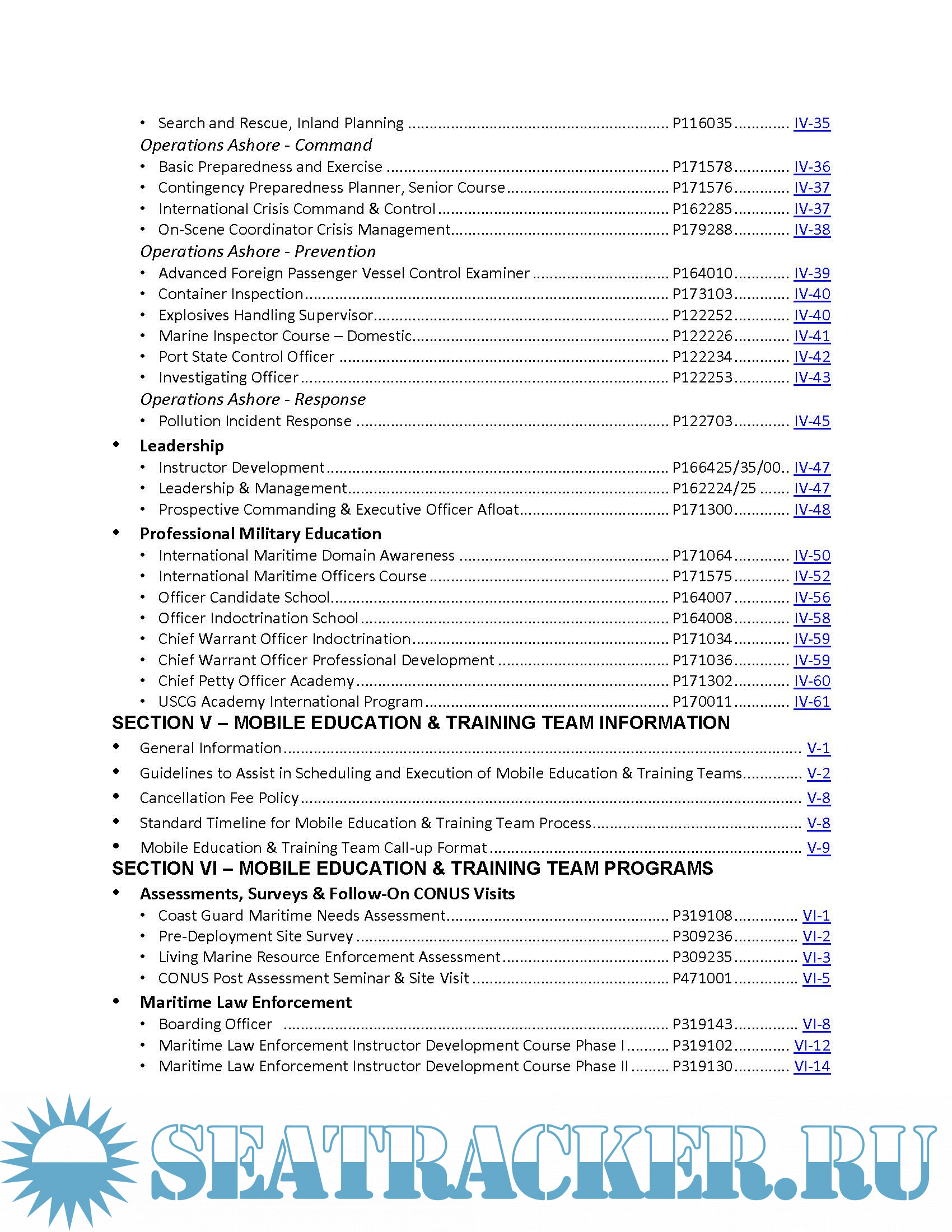 information regarding training and education programs offered by the U.S. Coast Guard. As a service,