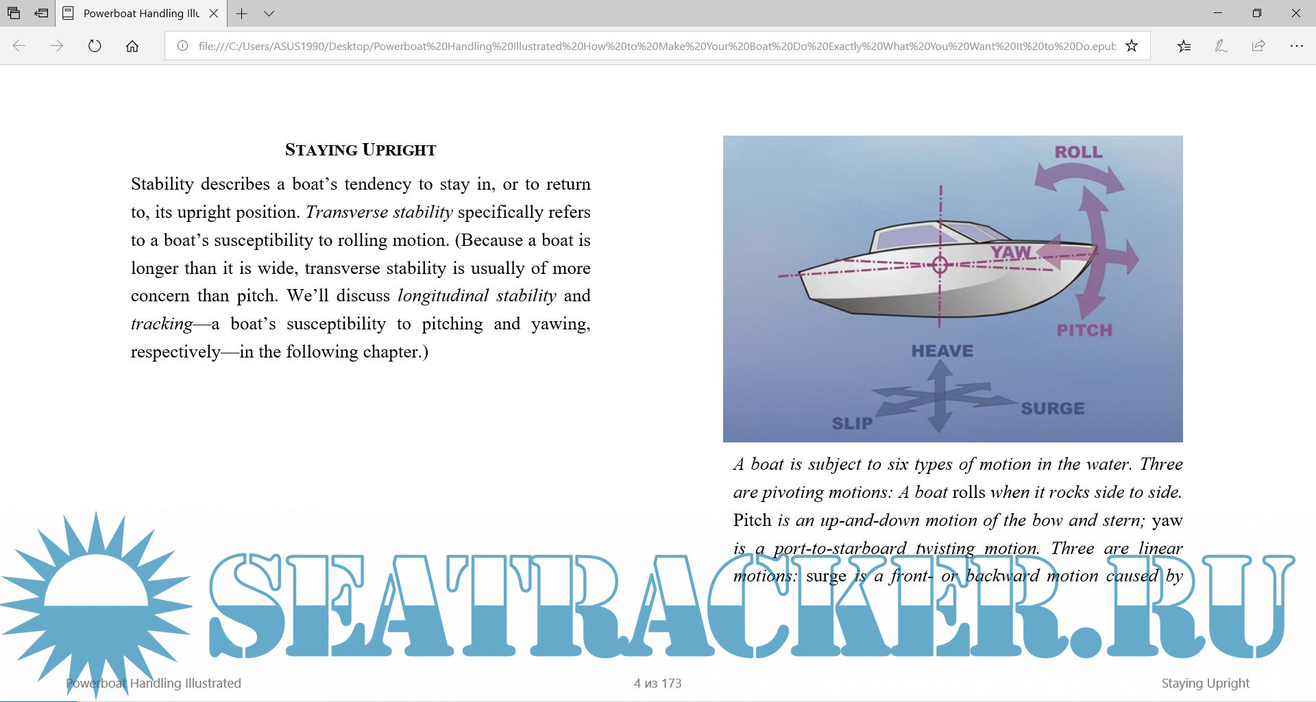 Year: 2007 Language: english Author: Bob Sweet Genre: Handbook Publisher: Mc Graw Hill ISBN: 978-0-07-170953-8 Format: EPUB Quality: eBook Pages count: 184 Description: Handling a boat can be a daunting task. These darn things just don’t seem to want to do what we want them to do. It can be particularly frustrating after you see an experienced helmsman glide his craft gracefully into the dock, and you wonder “Why can’t I do that?” To add to the stress, when you’re at the helm, it seems that the spectators on the dock are really judges observing your every move and scoring your performance. "Powerboat Handling Illustrated" is intended to ease your learning and convert what could be a stressful experience into an enjoyable one. Boat handling is a dynamic, interactive process, and a picture is worth a thousand words, so this book takes a highly visual approach. It divides the subject of boat handling into its logical components and provides the necessary background information for each situation. Additional info: This book format can be opened with Microsoft Edge, or with any other app., which is able to work with EPUB.
