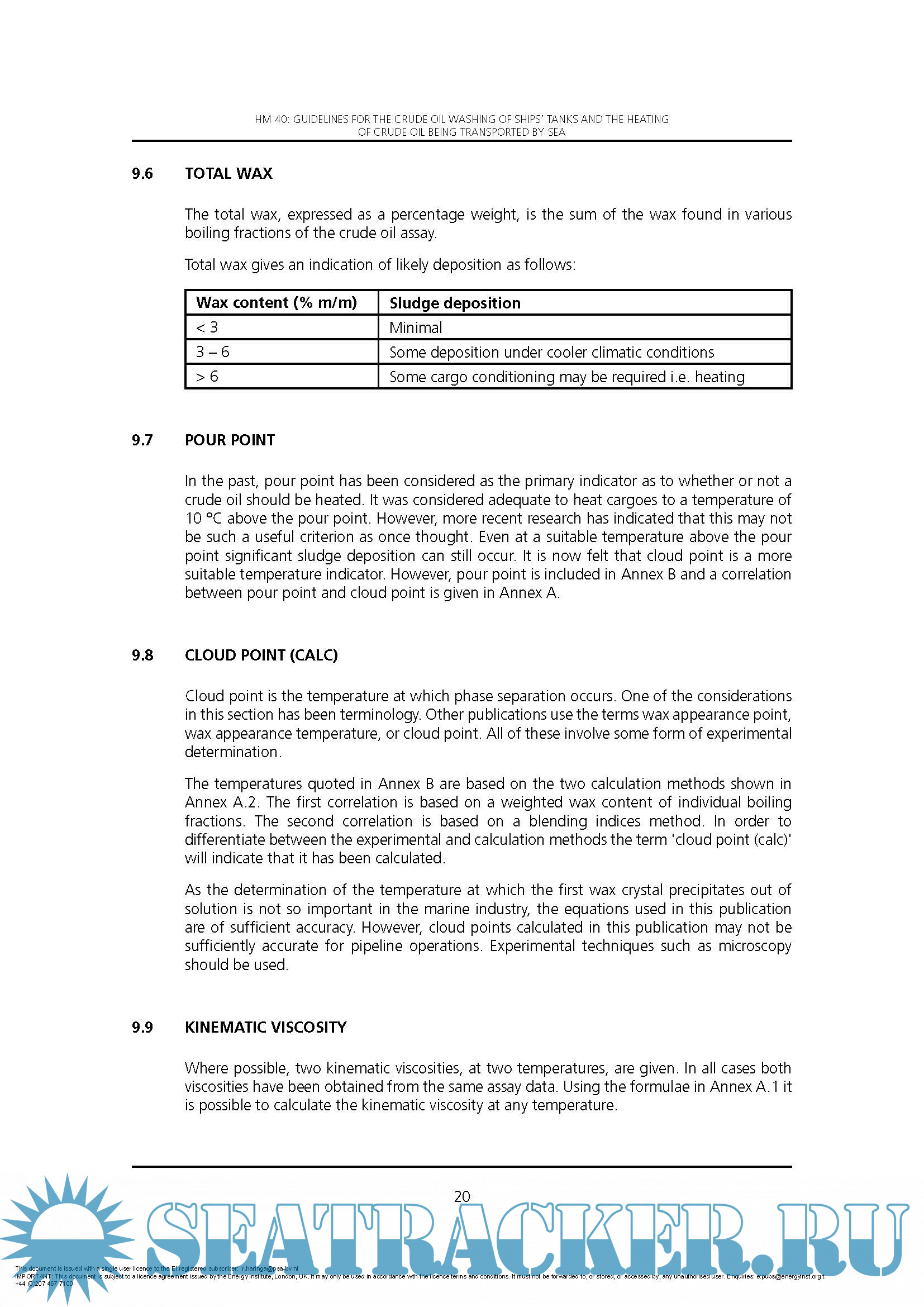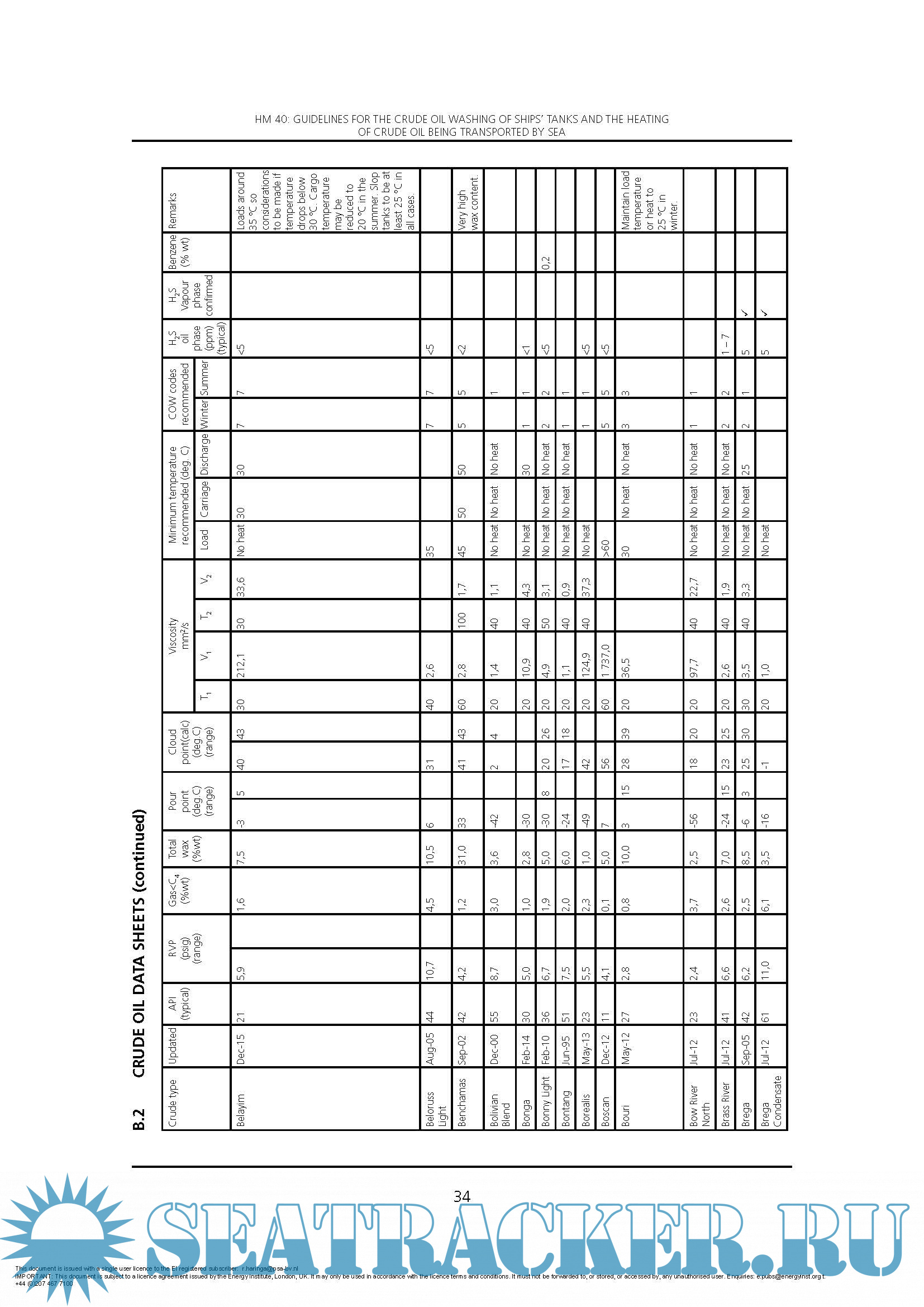 A table of crude oil properties can be found in Annex B. The data should not be used without