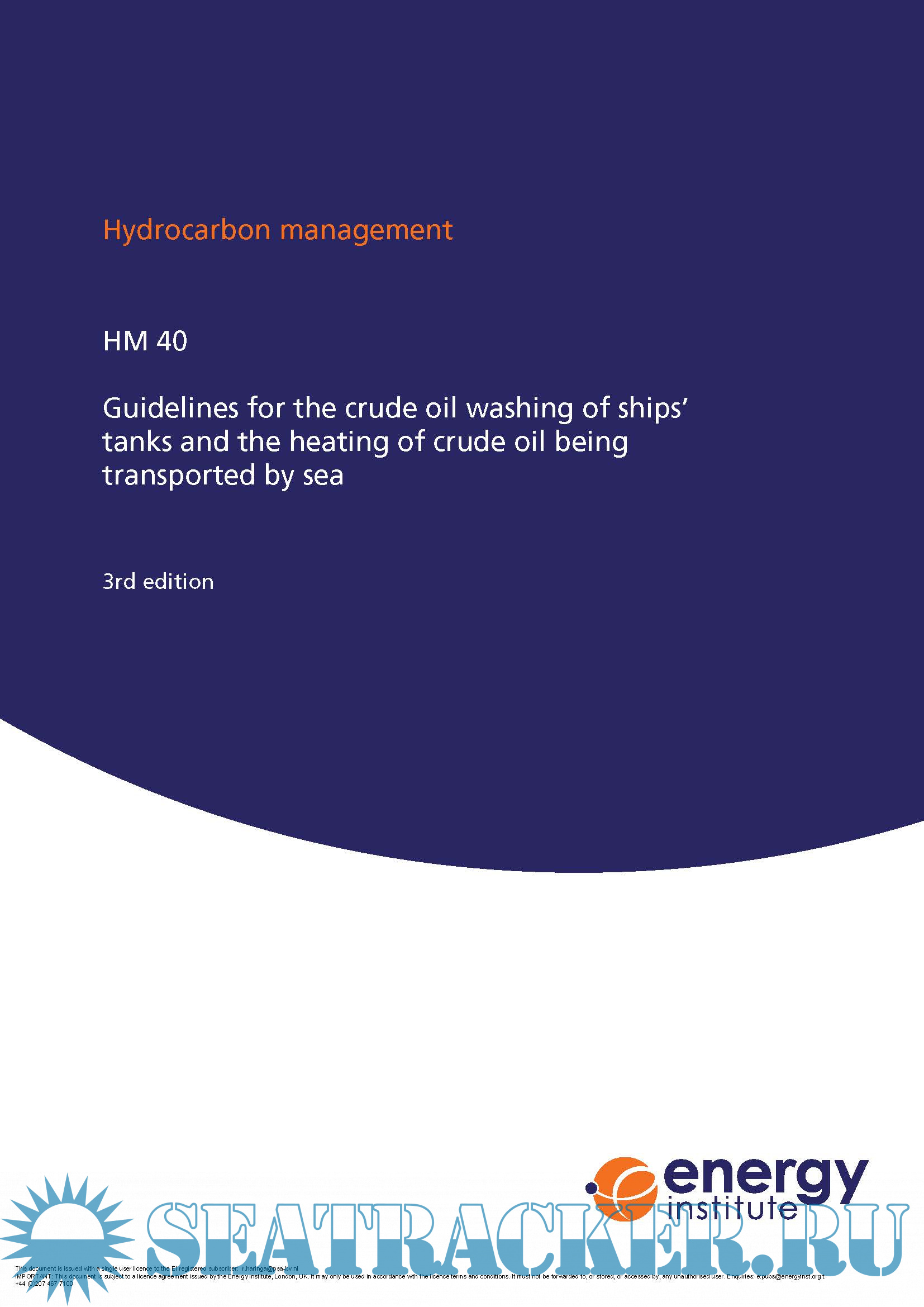 Hydrocarbon management HM 40 - Guidelines for the crude oil washing of ships’ tanks and the heating of crude oil being transported by sea, 3rd edition updated to 2018