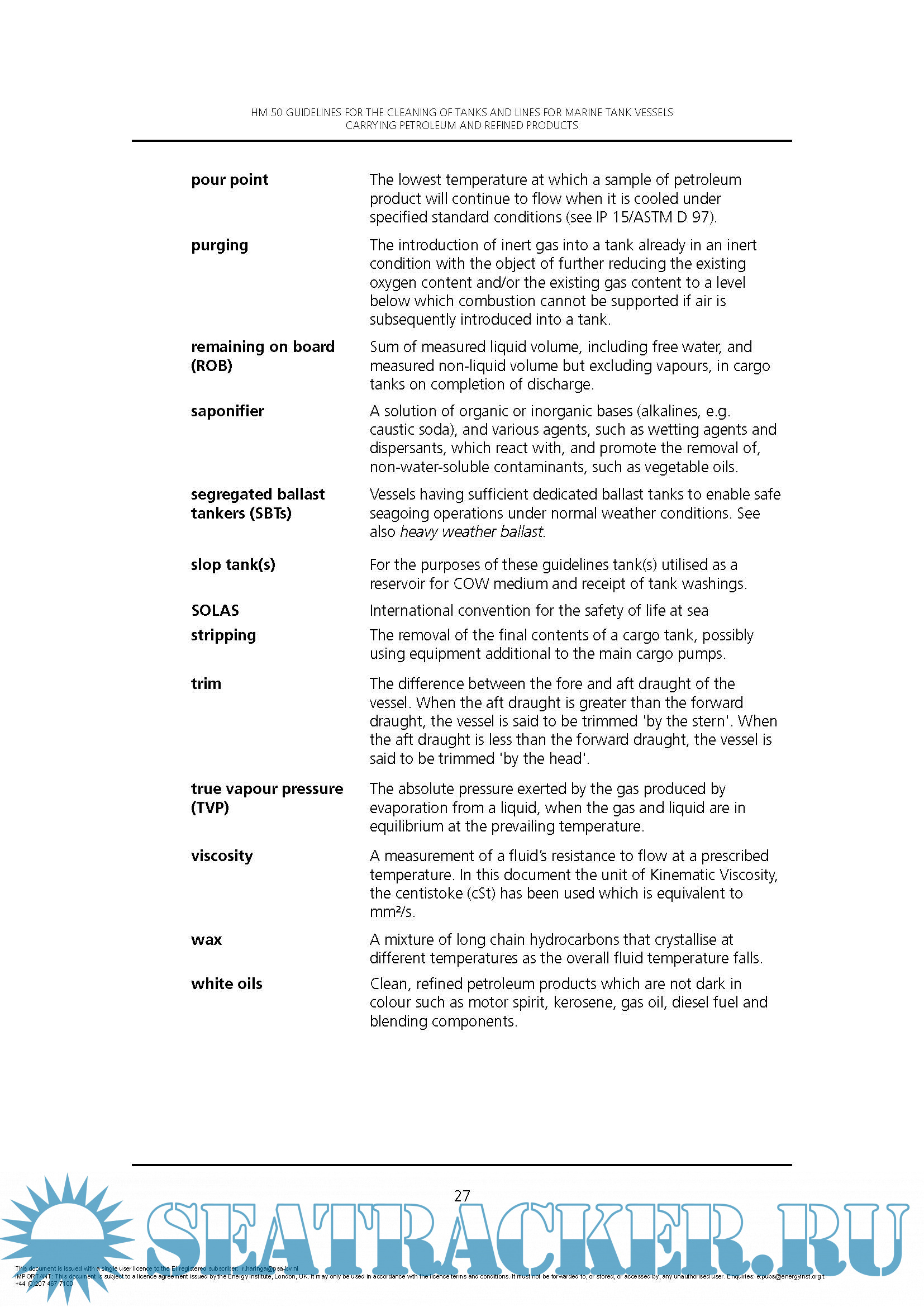 Hydrocarbon management HM 50 - Guidelines for the cleaning of tanks and lines for marine tank vessels carrying petroleum and refined products, 4th edition