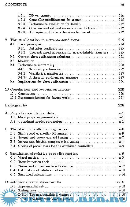 Year: 2006 Language: english Author: Øyvind Smogeli Genre: Research papers Publisher: NTNU Format: PDF Quality: eBook Pages count: 322 Description: This is a thesis about control of marine propellers. All ships and underwater vehicles, as well as an increasing number of offshore exploration and exploitation vessels, are controlled by proper action of their propulsion systems. For safe and cost effective operations, high performance vessel control systems are needed. To achieve this, all parts of the vessel control system, including both plant level and low-level control, must be addressed. However, limited attention has earlier been given to the effects of the propulsion system dynamics. The possible consequences of improper thruster control are: • Decreased closed-loop vessel performance due to inaccurate thrust production • Increased vessel down-time and maintenance cost due to unnecessary mechanical wear and tear. • Increased fuel consumption and risk of blackouts due to unpredictable power consumption. By focusing explicitly on the propeller operating conditions and the available options for low-level thruster control, this thesis presents several results to remedy these problems.