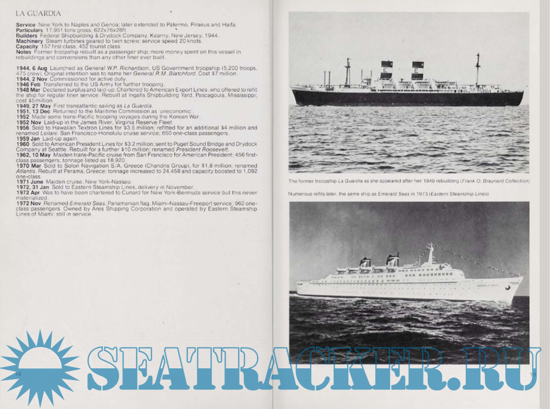 Year: 1981 Language: english Author: William H. Miller Genre: History Publisher: Arco Publishing ISBN: 0-668-05267-8 Format: PDF Quality: Scanned pages Pages count: 224 Description: The book reflects the post-war period of rising the Transatlantic shipping. Norwegian America Line's STAVANGERFJORD made the first post-war commercial Atlantic crossing in August 1945, and thereby began the most successful 12-year period that the Atlantic passenger-ship business has ever known. As quick as possible, other liners followed, fresh from the shipyards, either having been refitted after military cervices.