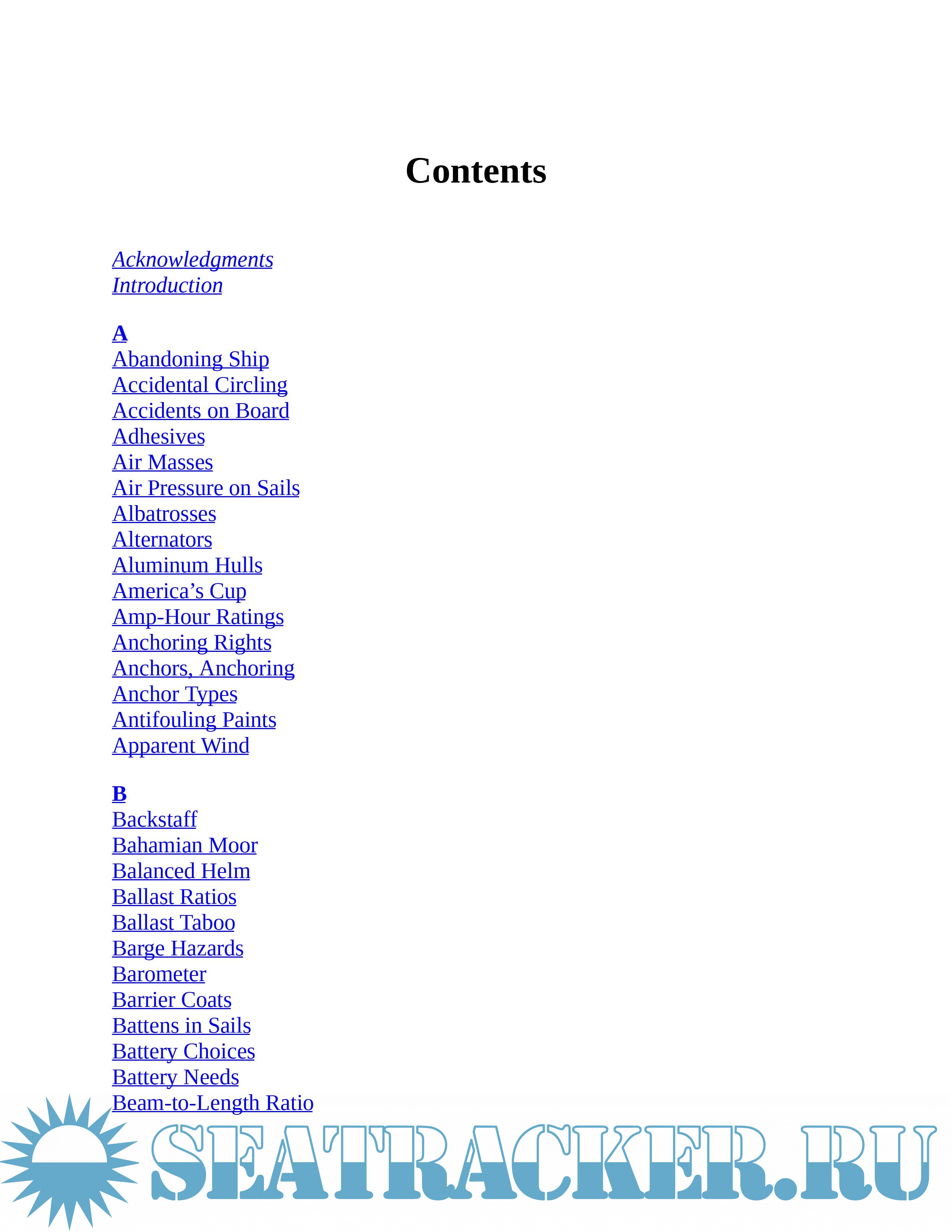 Covers seamanship and boat handling, navigation, routine boat maintenance, boat design and building, and nautical reference data