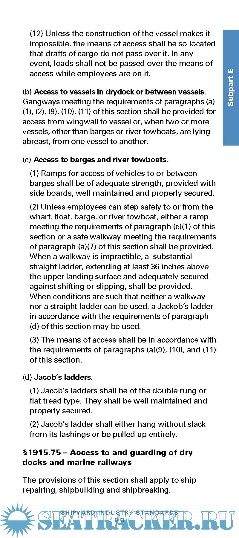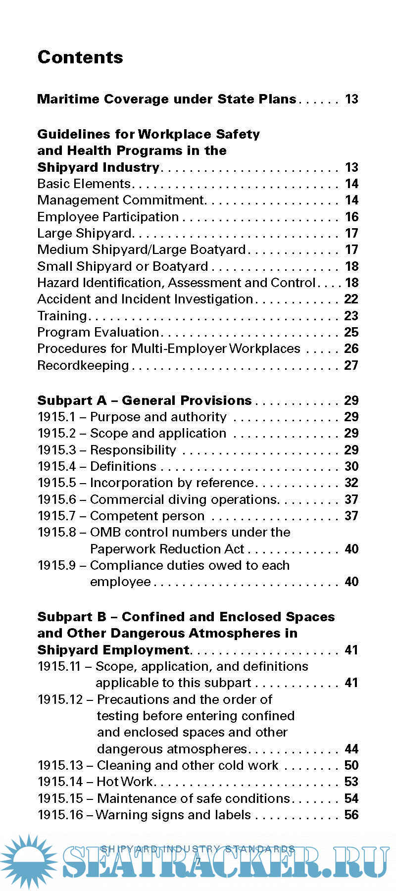 Description: This booklet contains all the safety and health standards specific to the Shipyard Industry contained in Title 29 Code of Federal Regulations (CFR) Part 1915, as of July 1, 2014. Also included are brief discussions of the following: