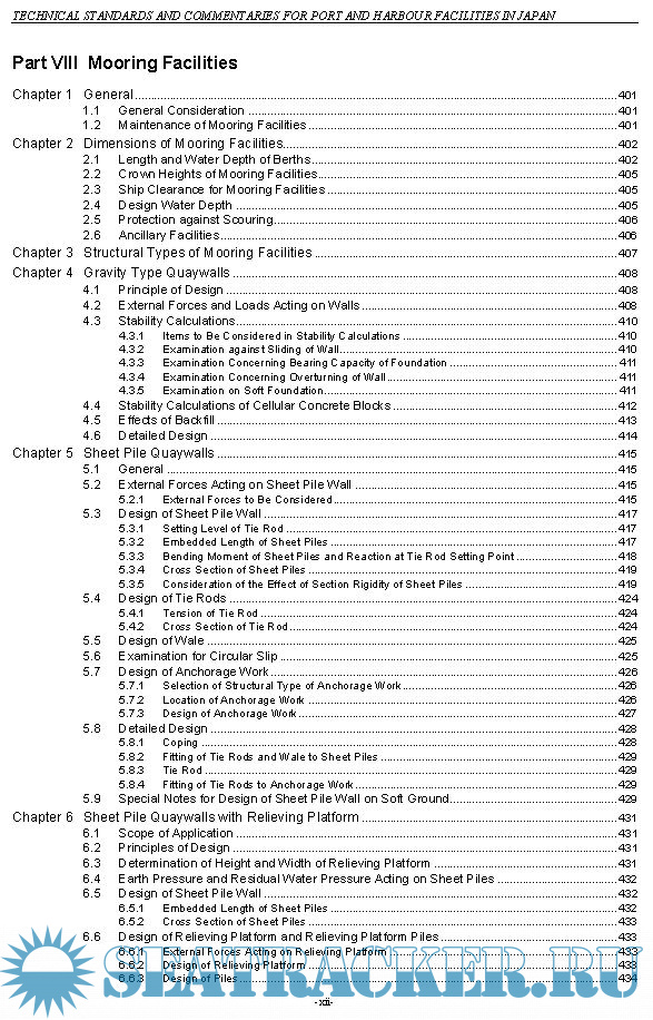 Year: 2002 Language: english Author: The Overseas Coastal Area Development Institute of Japan Genre: Technical book Format: PDF Quality: eBook Pages count: 664 Description: This book is a translation of the major portion of the Technical Standards and Commentaries of Port and Harbour Facilities in Japan (1999 edition) published by the Japan Port and Harbour Association, stipulated by the Ordinance of the Minister of Transport, which was issued in April 1999. The translation covers about two thirds of the Japanese edition.