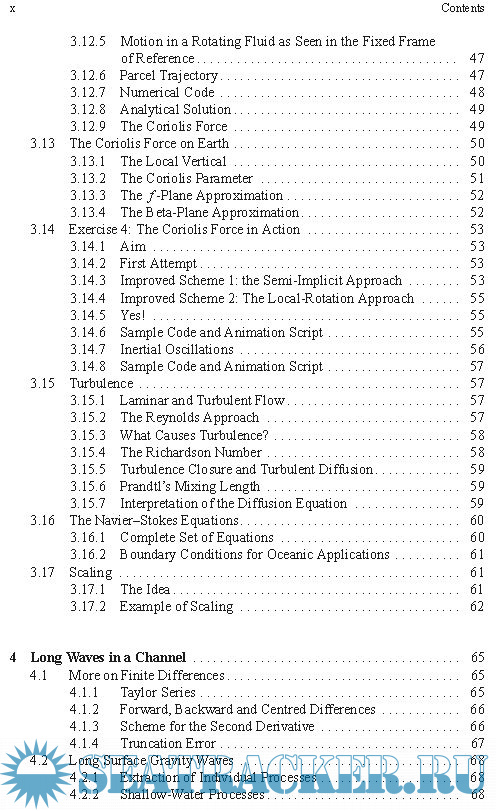Description: This book focuses on the dynamics of the ocean being influence by the Earth’s rotation and density stratification Fluids in motion are a difficult subject of study that traditionally requires advanced knowledge of analytical mathematics, in particularly matrix algebra, differential and integral calculus, and complex analysis. Hence, this fascinating field of science, known as geophysical fluid dynamics, is accessible only to a limited number of students – those who either are naturally geniuses or those who underwent tough years of intense University study.