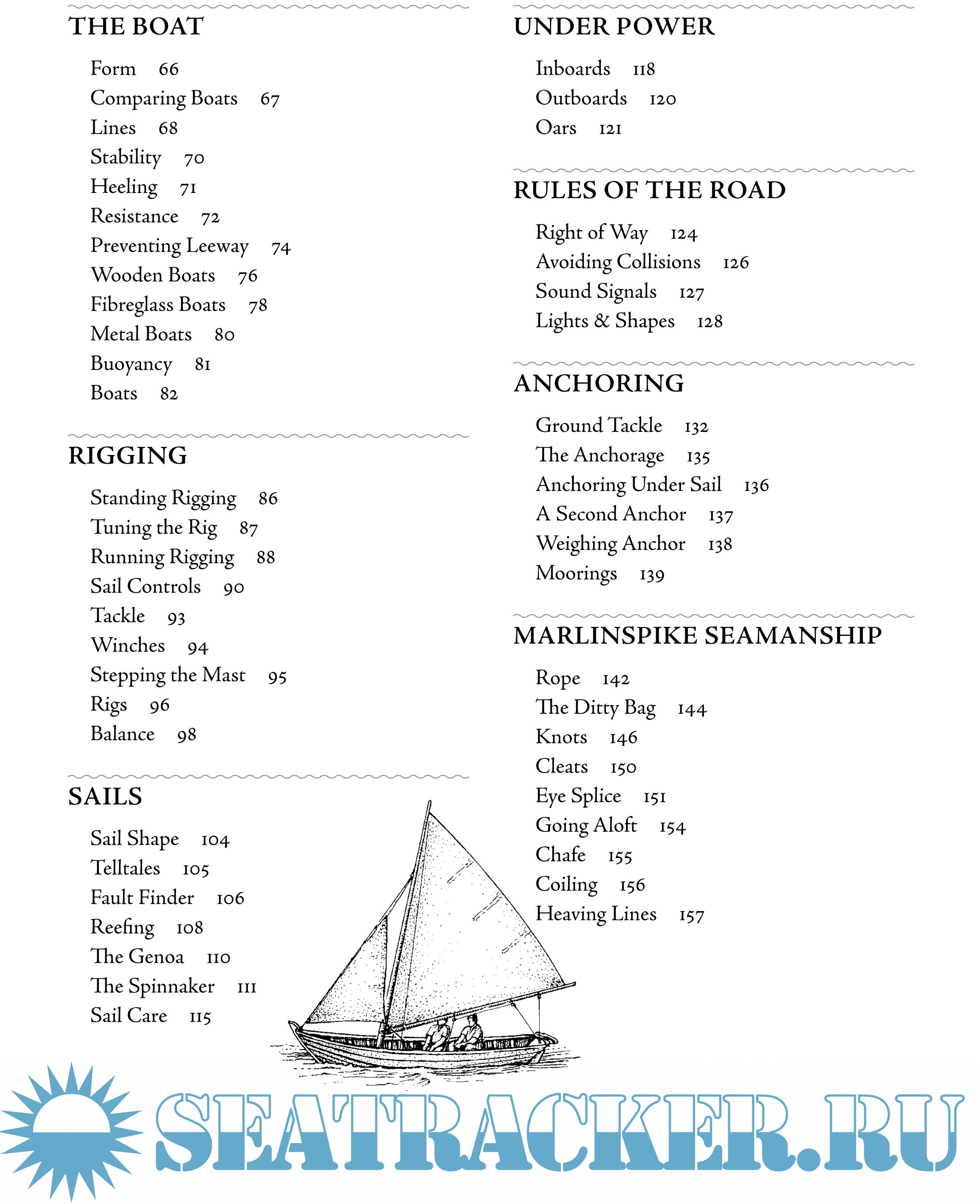 Then there is a chapter devoted to the boats and familiarizing readers with the boat construction, materials they are commonly made of, stability, buoyancy etc. The rigging and sails of the boats have been covered each in separate chapters. in addition to that, the book provide the information about the established Rules of the Road and instructions to follow in case of emergency.
