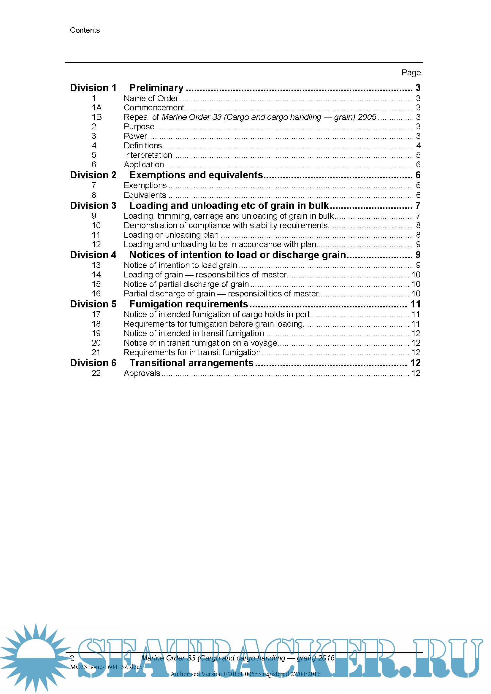 Marine Order 33 (Cargo and cargo handling - Grain), Explanatory Statement & Calculation of Stability for Ships Carrying Bulk Grain updated to 2018