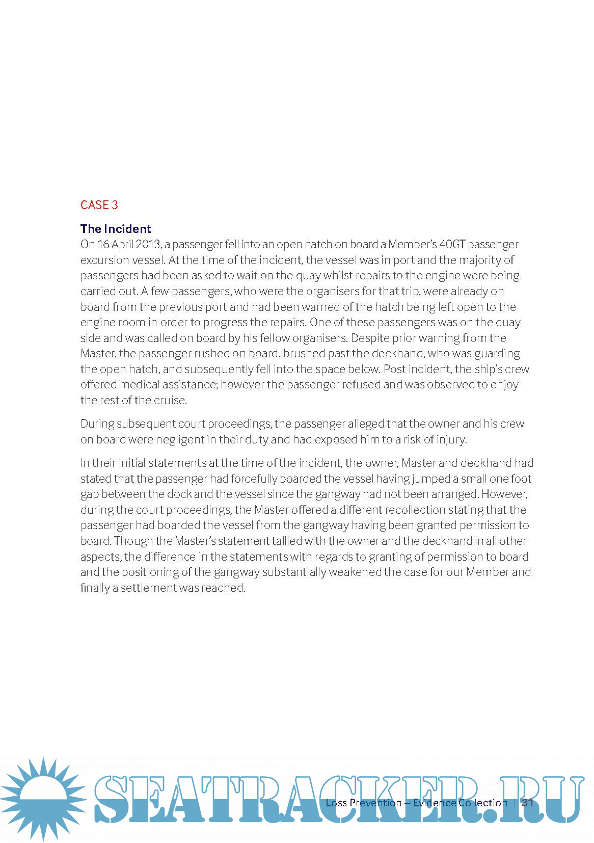 Year: 2016 Language: english Author: The Shipowners P&I Genre: Guide Format: PDF Quality: eBook Pages count: 38 Description: The Shipowners’ Club insures its Members for their liabilities to third parties arising out of the operation of ships including, amongst others, liabilities related to personnel, collision, damage to or loss of property, cargo and pollution. Whilst the ship’s crew work in close conjunction with our Member’s shore management towards a common goal of conducting shipboard operations in a safe manner and in compliance with the relevant statutory regulations, unfortunately incidents do occur. These events expose our Members and the Club to claims, some of which may be substantial in terms of the costs involved and/or the liabilities incurred. The ability of the Club to defend a claim depends greatly on the evidence and records that are made available to the Club, its lawyers, Correspondents and surveyors. In this regard, the role of the ship’s crew at the time of an incident is of great significance. Appropriate action with regards to collecting, preserving and presenting necessary evidence may help protect the Member and assist in mitigating potential claims. The actions of the ship’s crew in collecting and preserving evidence should be independent of the perceived seriousness of the incident, as a number of cases, especially pertaining to personnel injury, may be presented many months or years after the alleged incident. In such cases, contemporaneous evidence has greater importance as opposed to evidence collected long after the incident has happened. Apart from assisting in defending a claim by trying to establish the events leading up to the incident, suitably collected and preserved evidence also plays its part in establishing procedures and methods to prevent similar incidents from happening in the future and can be a good source for training materials.