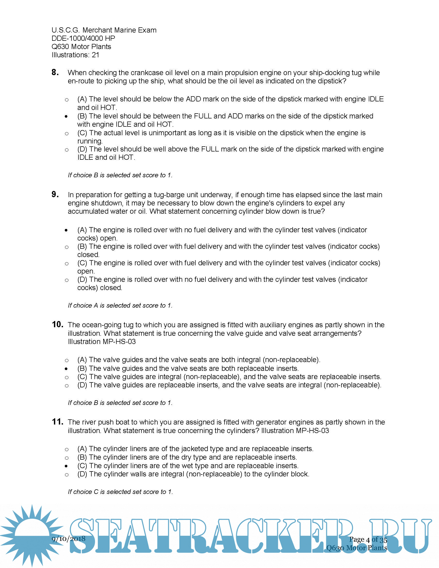 Year: 2018 Language: english Author: USCG Genre: Guide Format: PDF Quality: eBook Pages count: 35 Description: This download contains a sample of USCG Merchant Marine examinations regarding the DDE-1000/4000 HP Q630 Motor Plants.