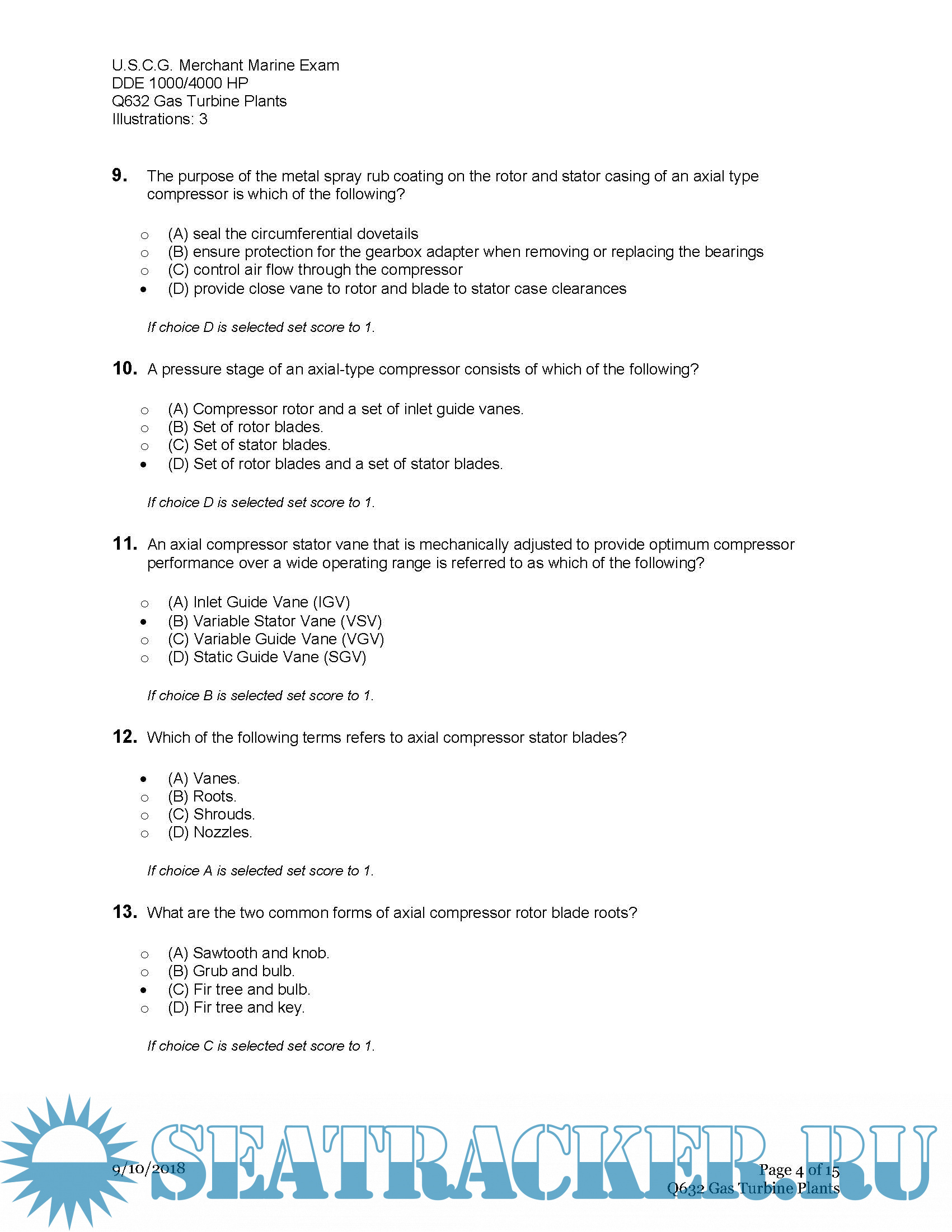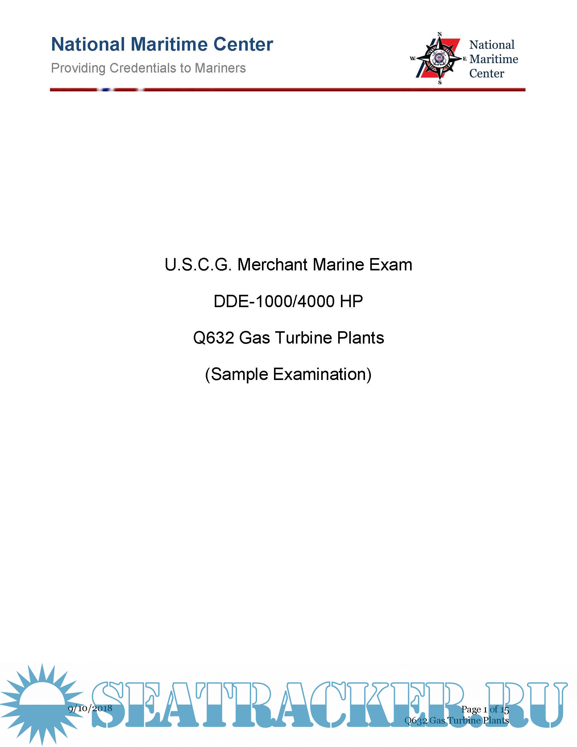Description: This download contains a sample of USCG Merchant Marine examinations regarding the DDE-1000/4000 HP Q632 Gas Turbine Plants.