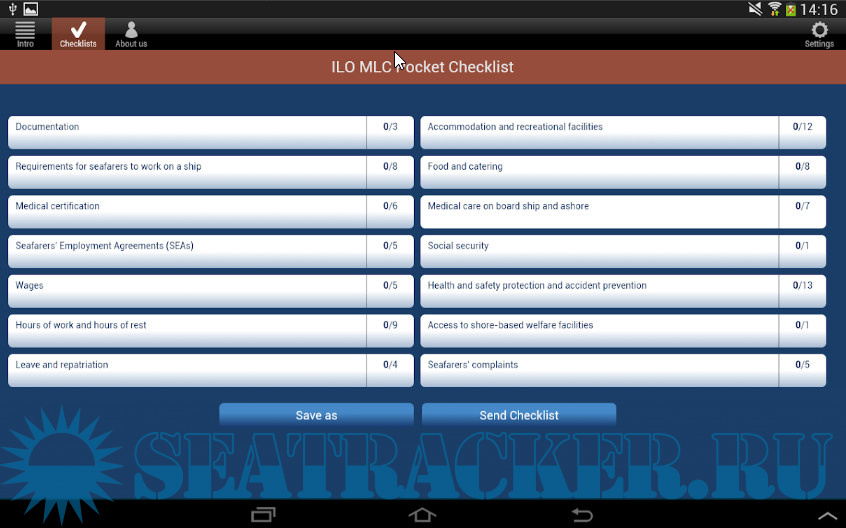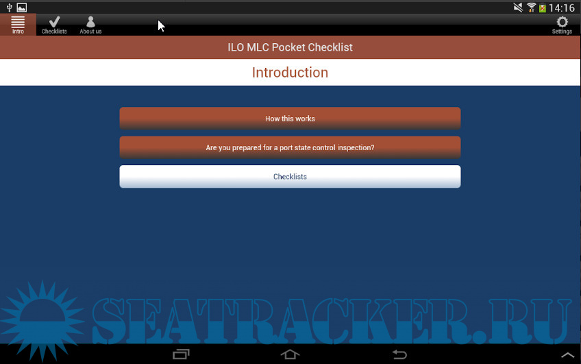 Description: To help reduce the risk of port state control detentions, this app serves as an interactive checklist that enables ship operators to view the requirements on the ILO MLC and check activities off as they are completed.