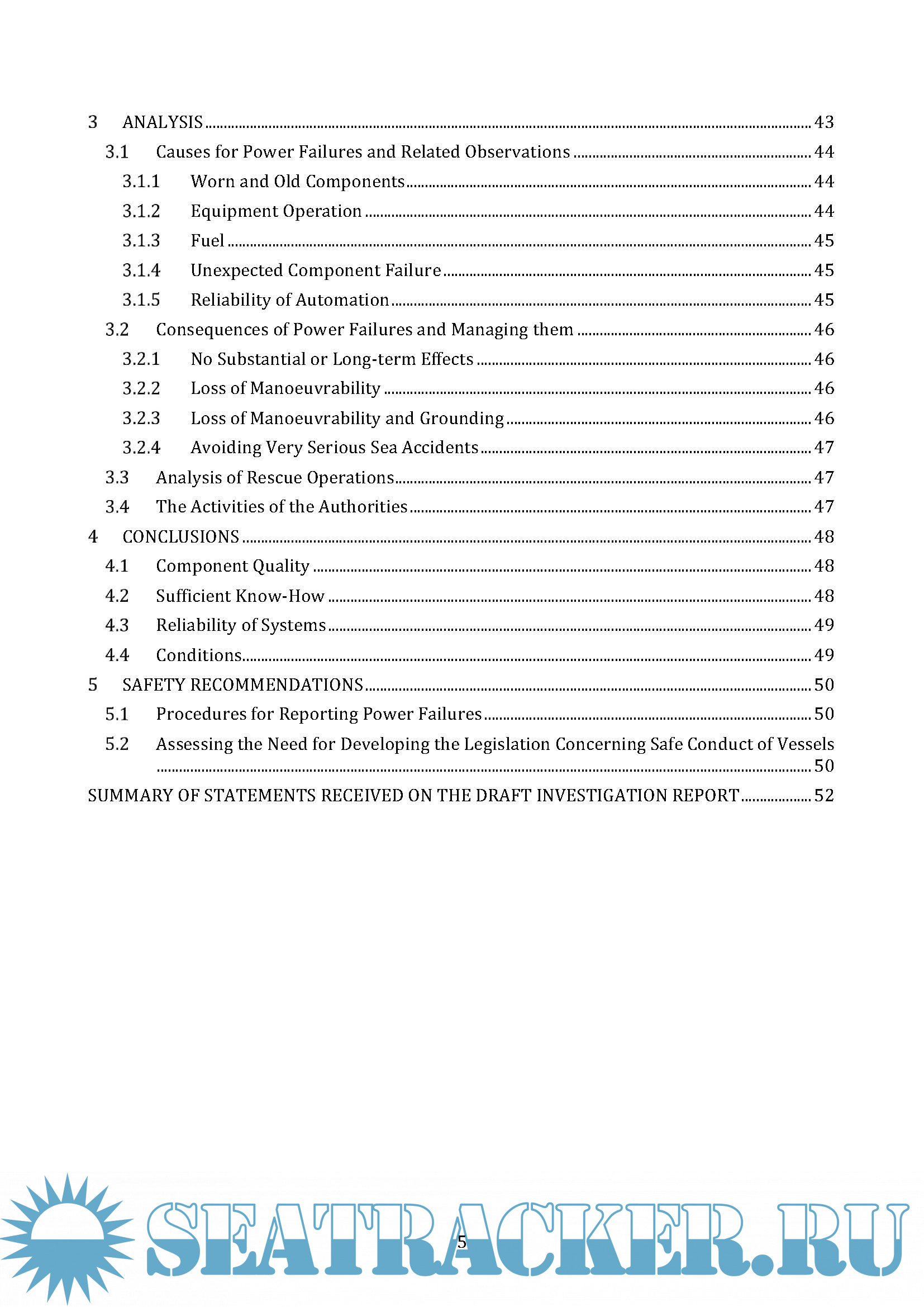 Power Failures on Ships, Safety study