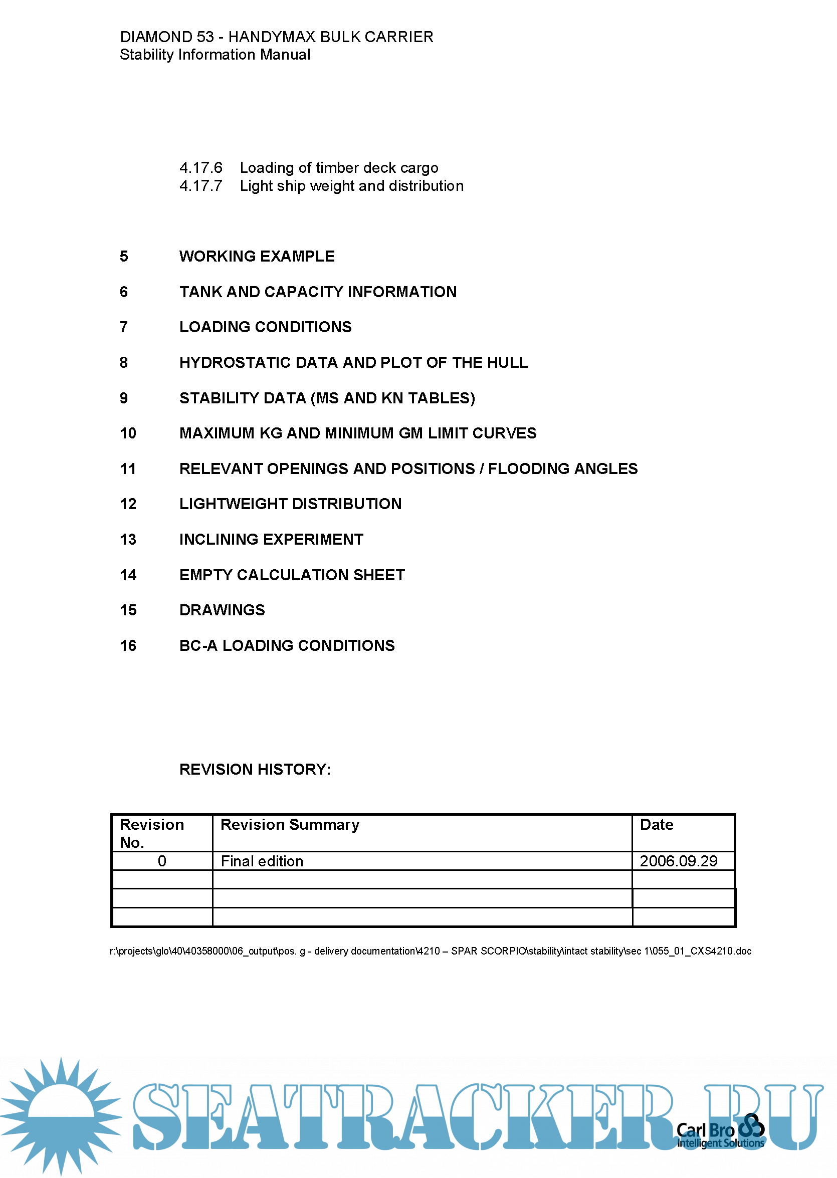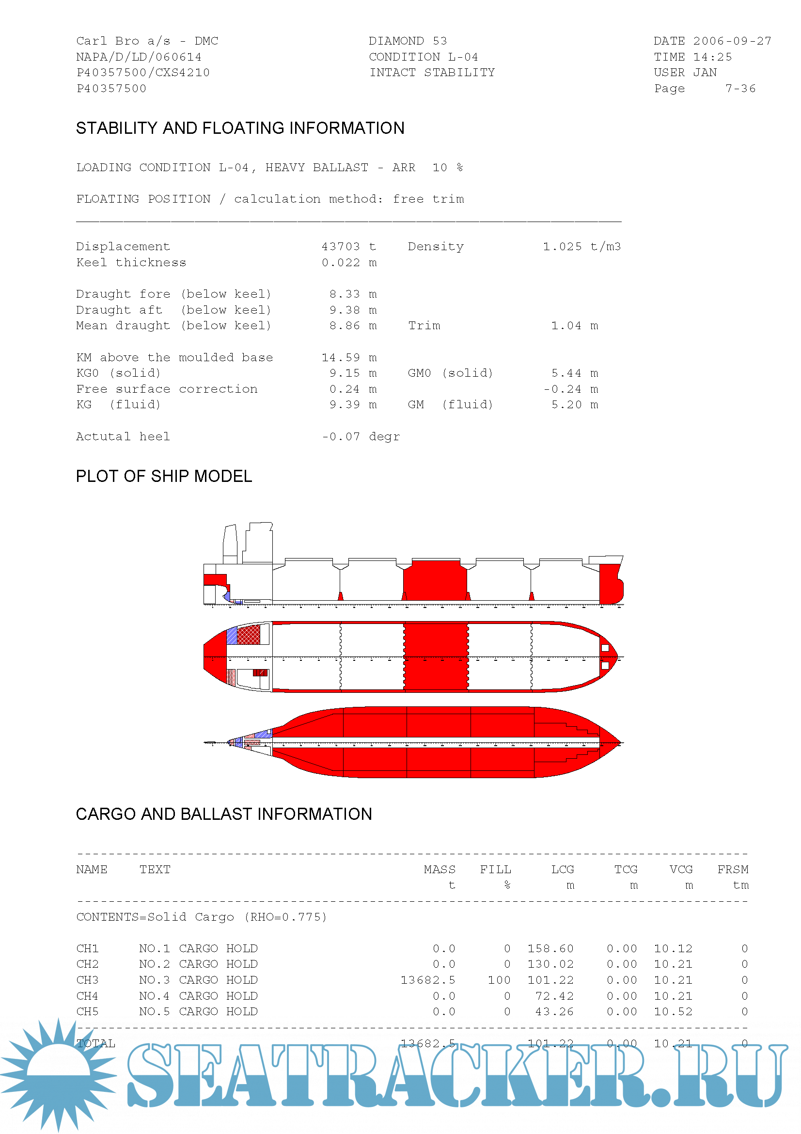 Diamond 53 - Handymax Bulk Carrier - Stability information manual - Carl Bro [2006, PDF]