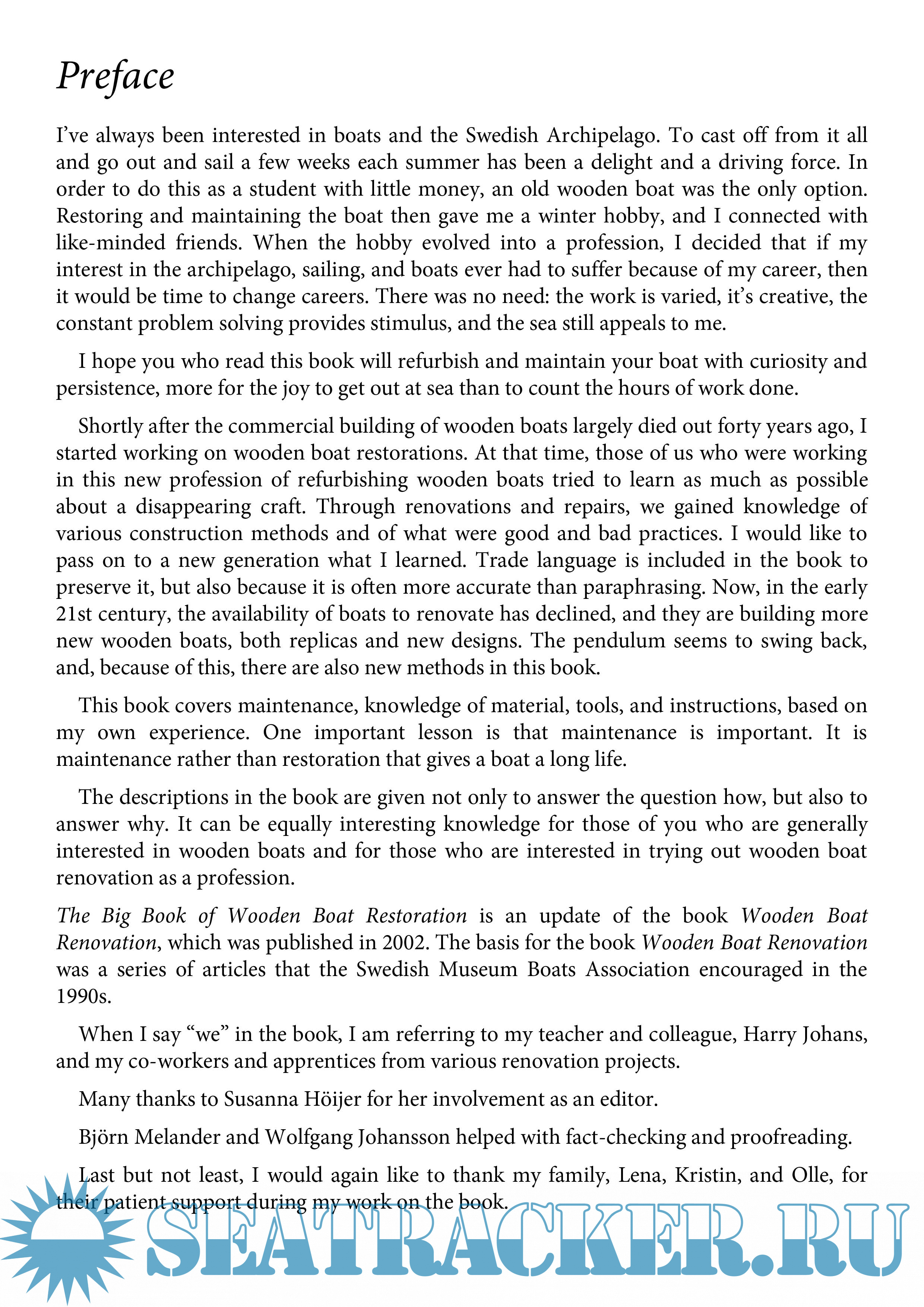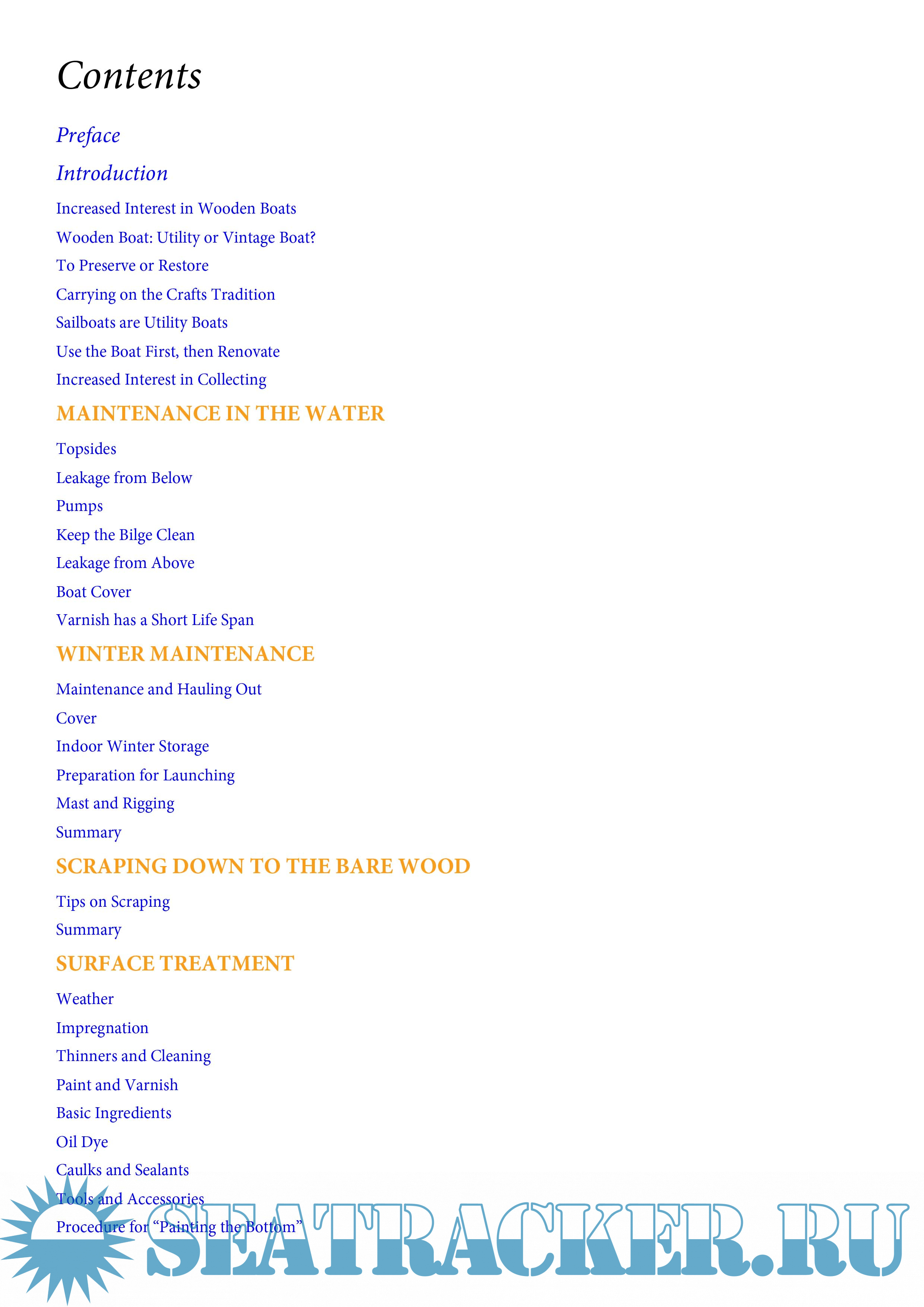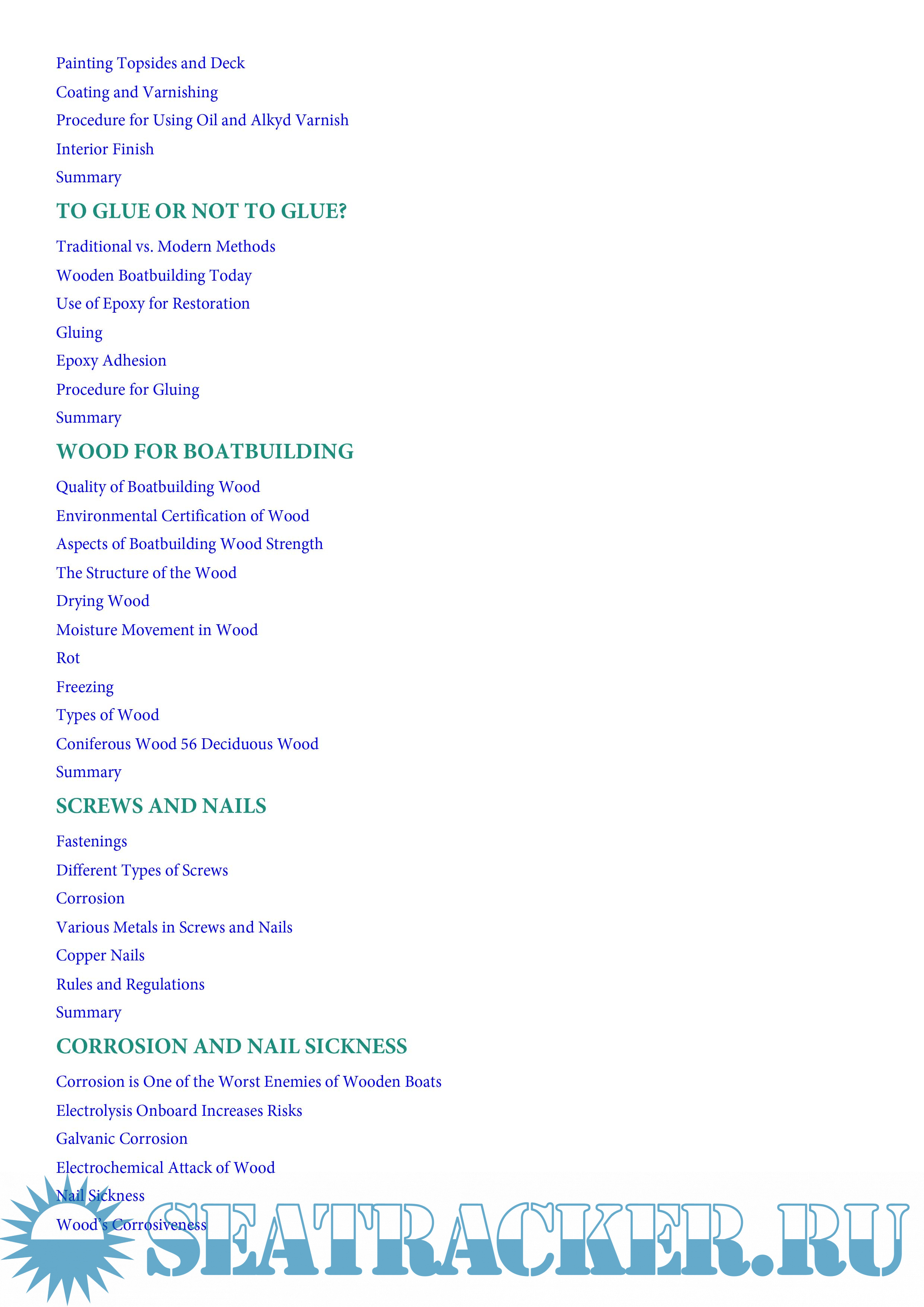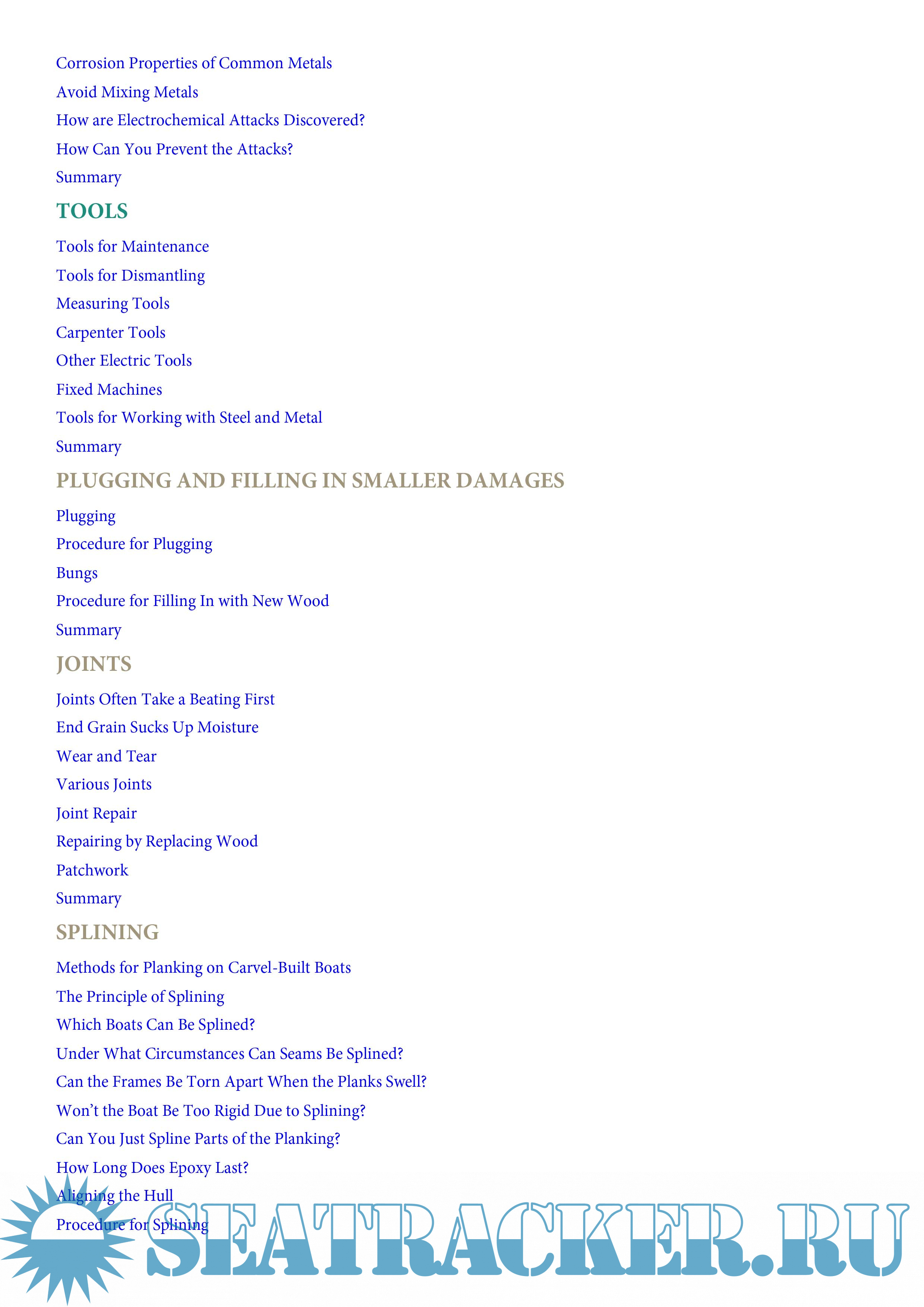 This book contains chapters on boat care, including winter maintenance, racing, finishing, and stripping. You will also find current information on boat building, gluing, and tools. The most extensive part of this book consists of chapters that describe the detailed clean repair of wooden boats”everything from plug-accession and bonding to changing socks and bottom engine installation.