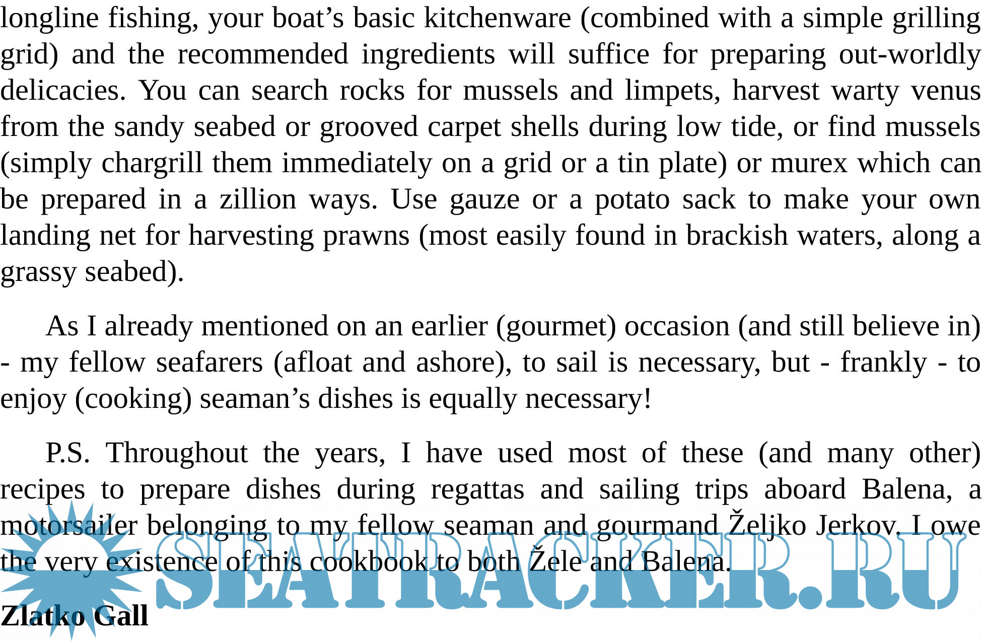 Perhaps I was trying to achieve the unachievable - to share my sailing experiences in a single edition with seafarers on small boats and/or family-made single-cabin crafts, as well as with those sailing on 40+ feet yachts. What kept me afloat - regardless of whether you cook on a camper’s stove or in a fully-equipped kitchen with four gas flames, regardless of whether you are a regular weekend-sailor or a dreamer who sets sail from his land-based kitchen - the one thing that melts us all in the same boat pot is nautical passion. And, of course, the gusto from the sea.