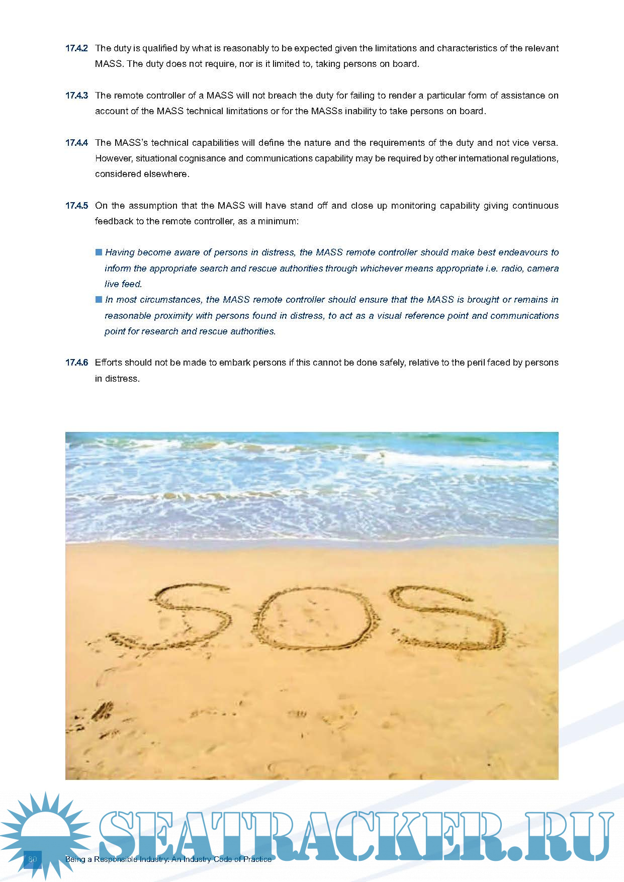 Year: 2017 Language: english Author: Society of Maritime Industries Genre: Convention (rules) Format: PDF Quality: eBook Pages count: 84 Description: The development of Maritime Autonomous Surface Ships (MASS) has continued at a very significant pace over the last few years with more vessels entering operation all the time. They come in a variety of sizes and have a very diverse set of operational capabilities which all place their own unique demands on those who own and operate them and the remainder of the Maritime Community. MASS are an element of the development of Robotics and Artificial Intelligence (RAI) systems across the various transport sectors.