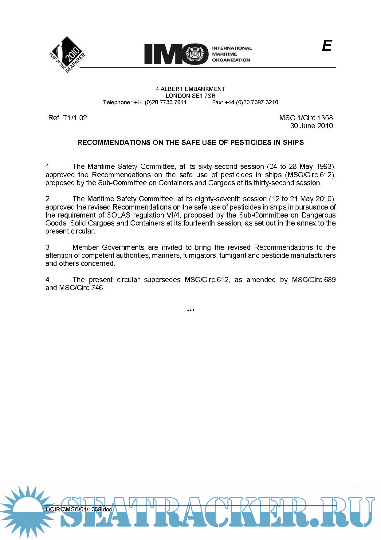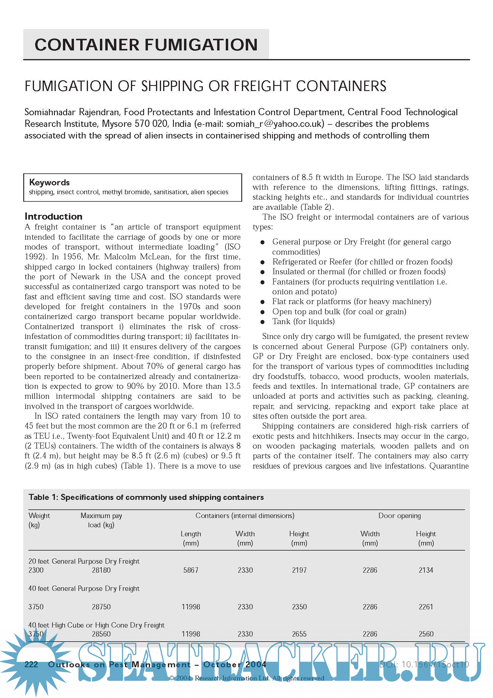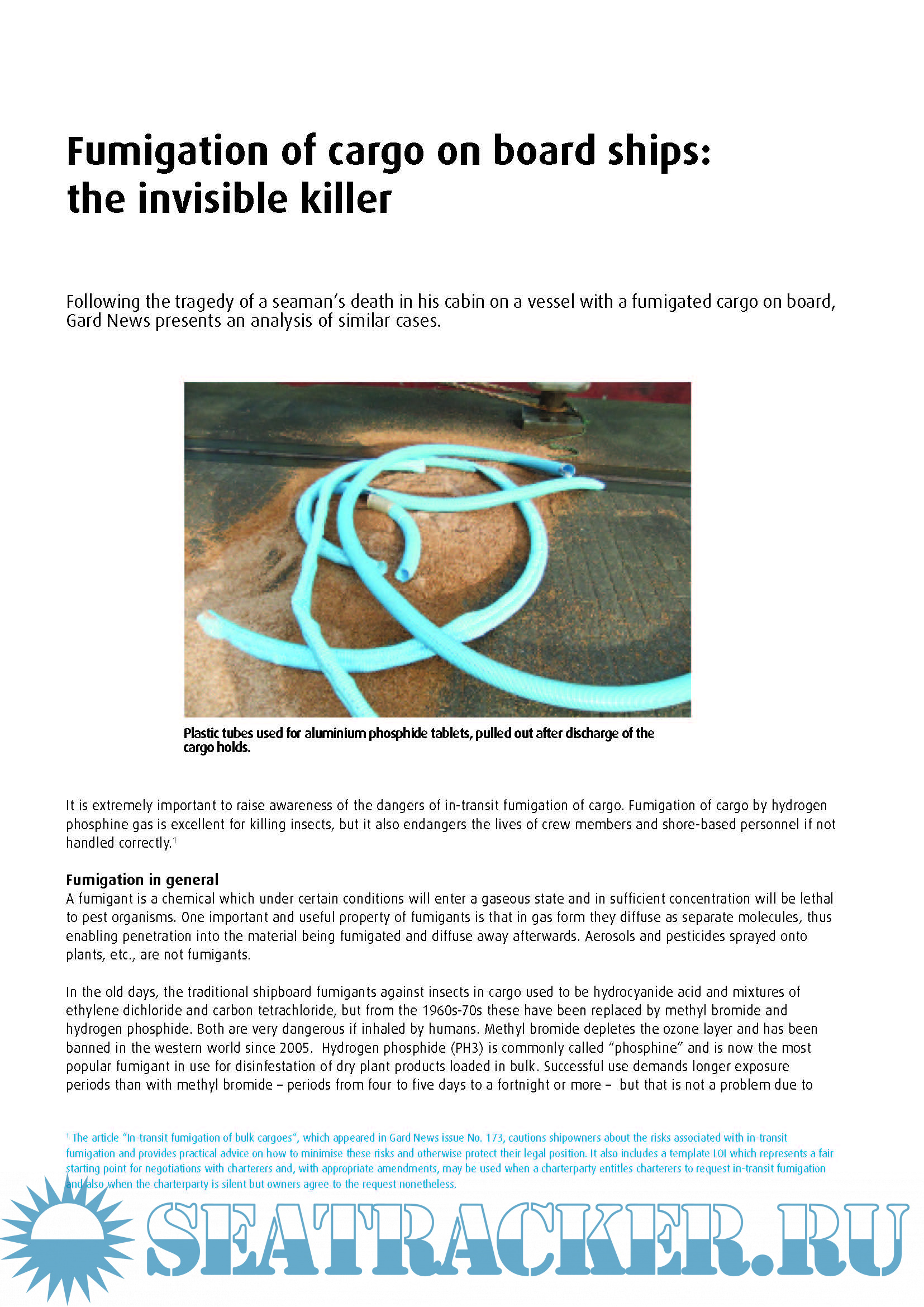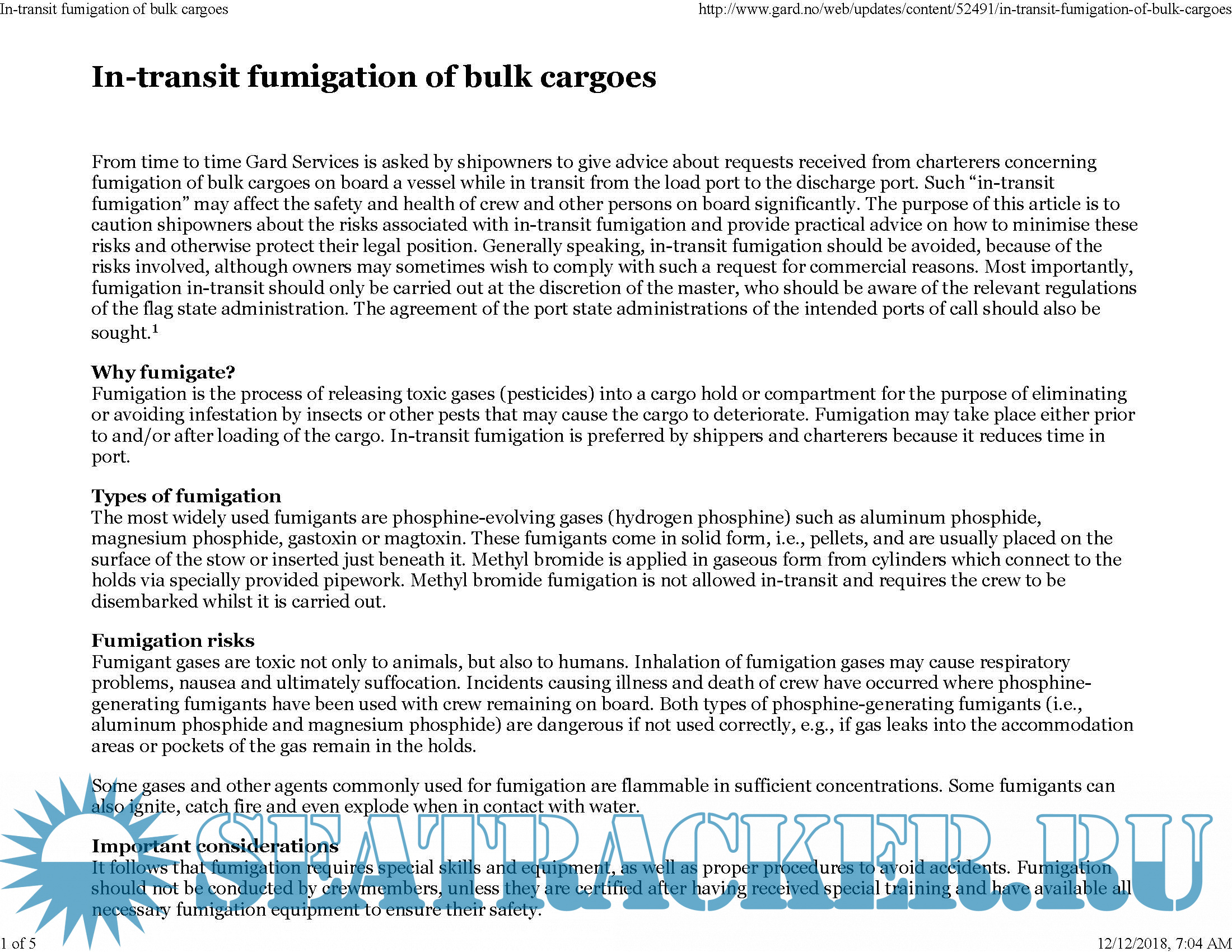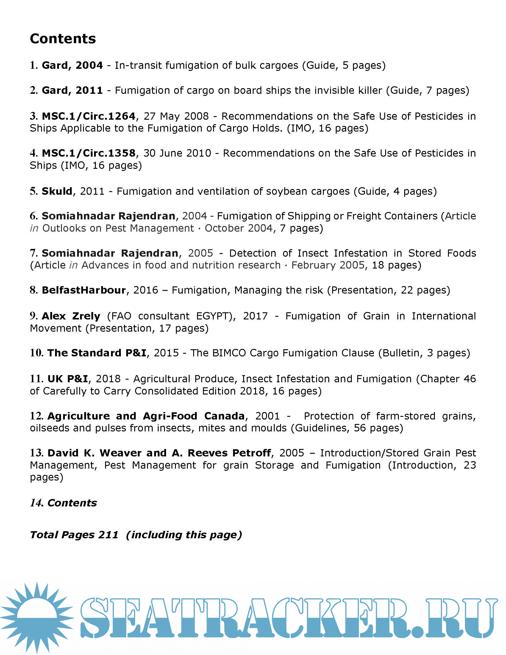 Description: This Download contains information relating to Fumigation of cargo on board ships. Refer to contents for complete list