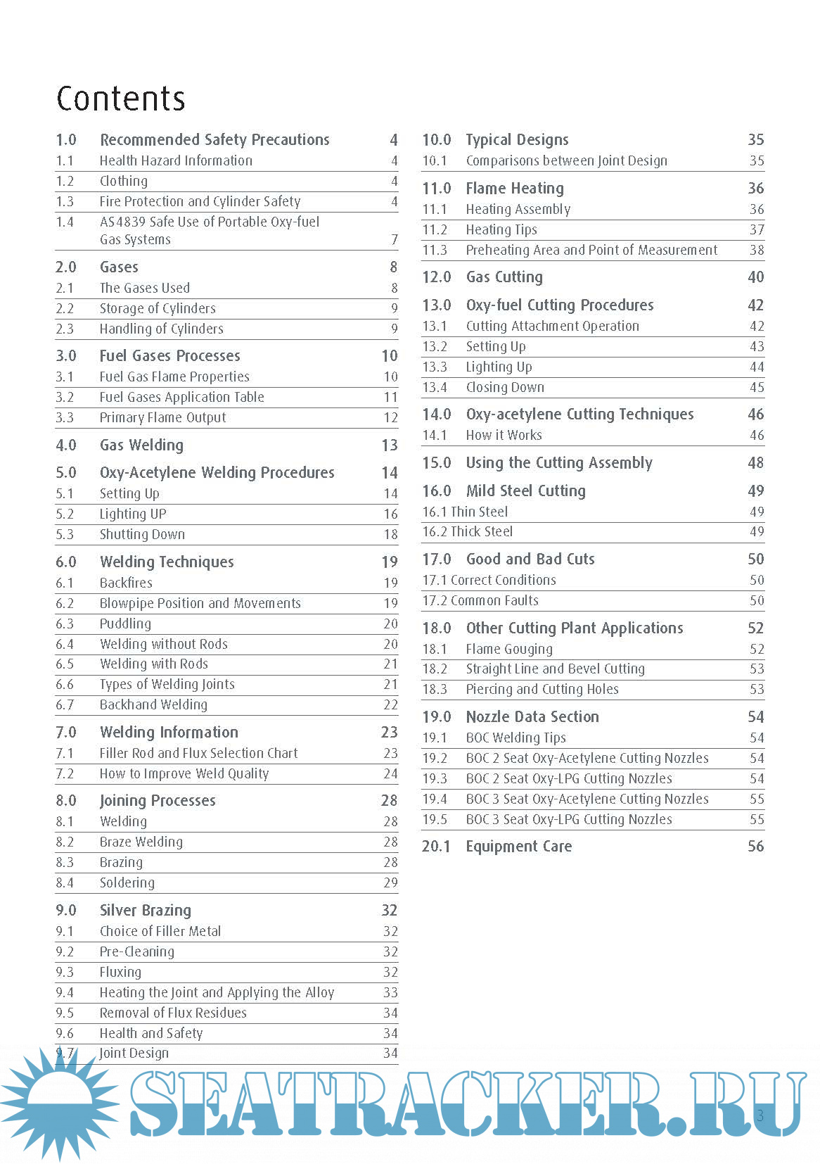 Year: 2012 Language: english Author: BOC Genre: Guide Format: PDF Quality: eBook Pages count: 60 Description: The oxy-fuel process utilizes a flame to generate heat for cutting, welding and brazing. Care must be taken to avoid the contact of the flame with any combustible substances. A firebrick top workbench is recommended for cutting on. Ensure that you have adequate ventilation to dissipate fumes in work locations.