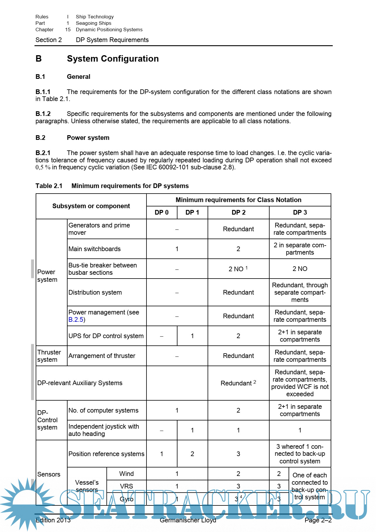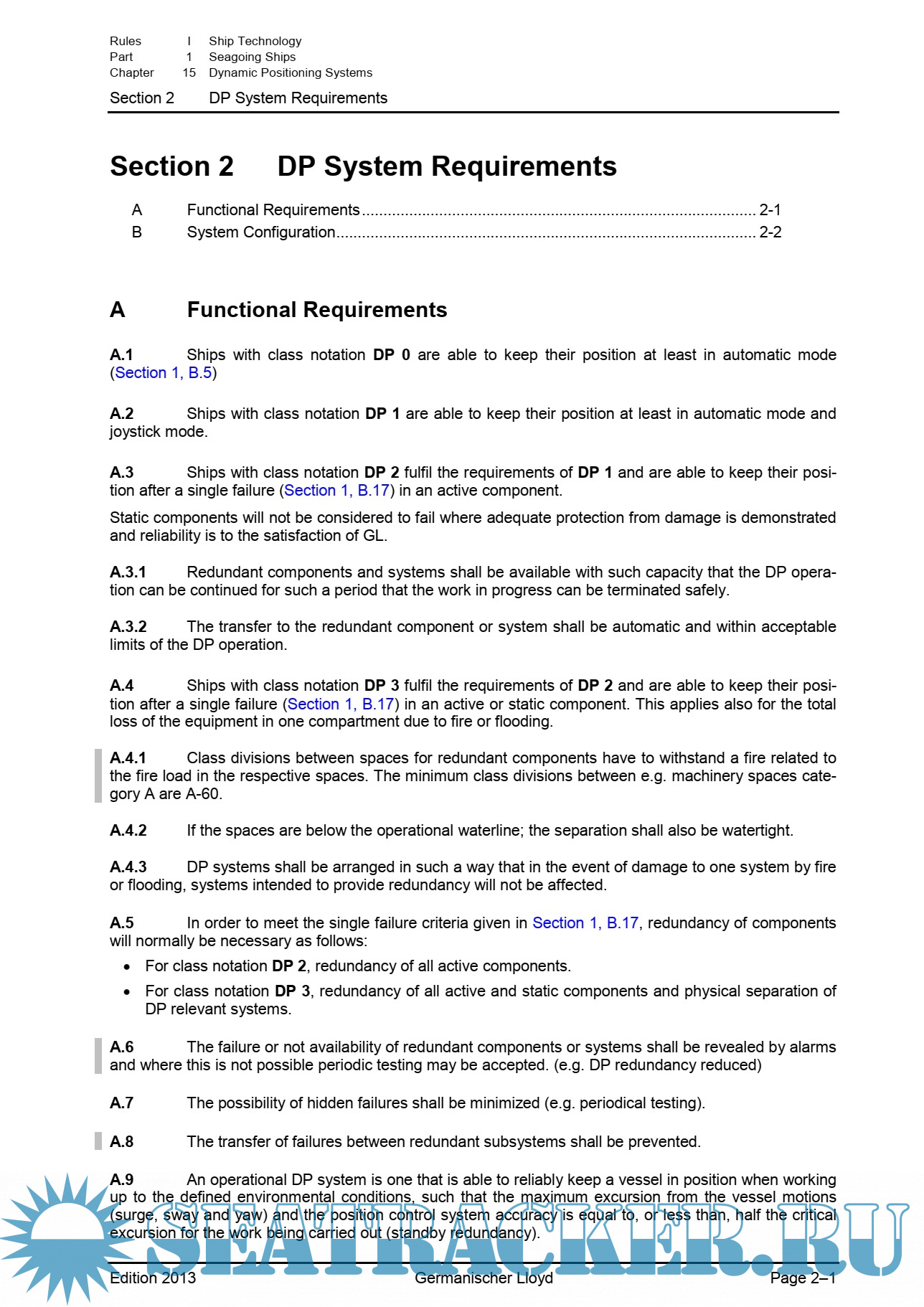 Description: These Rules set out GL's requirements for dynamic positioning (DP) systems installed on board ships and mobile offshore units and apply to dynamically positioned vessels and mobile offshore unit.