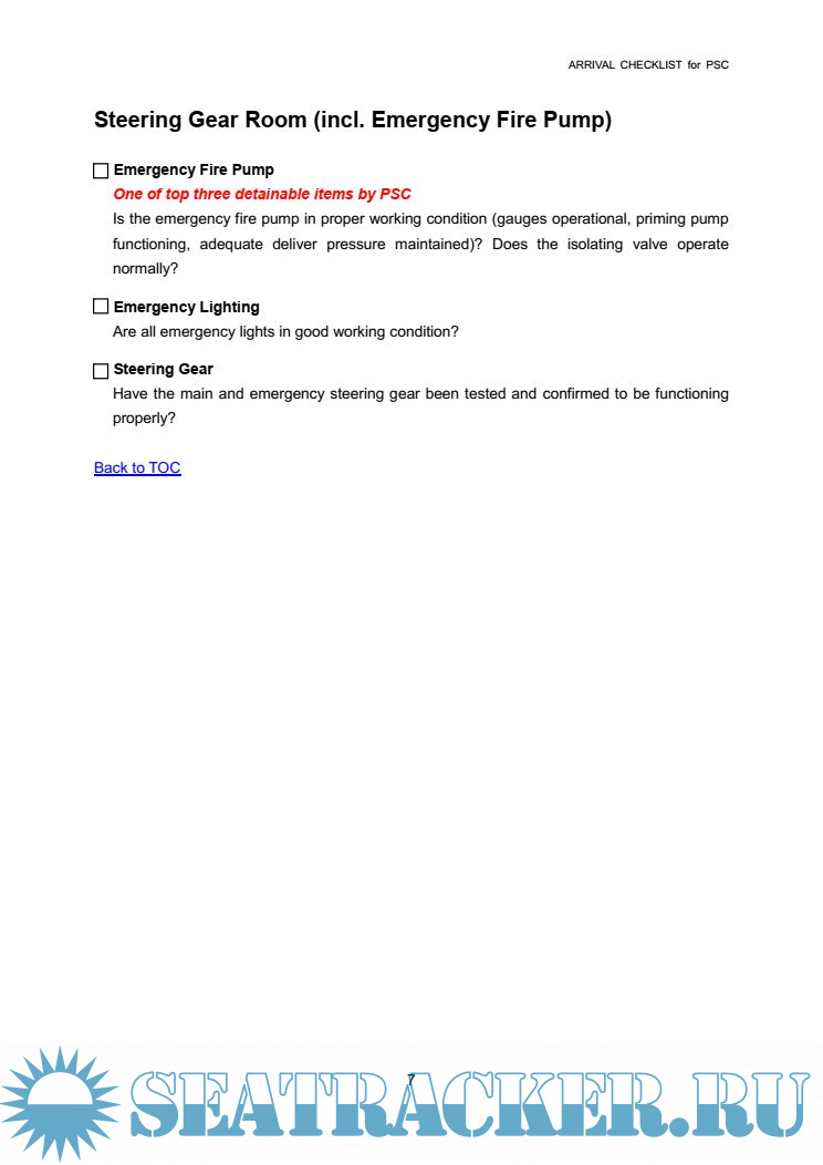 To minimize the risk of your ship being detained by PSC, the checklist should be used by the vessel’s crew prior to arrival into port. The items identified in this checklist focus on areas where deficiencies that have often resulted in PSC detention.