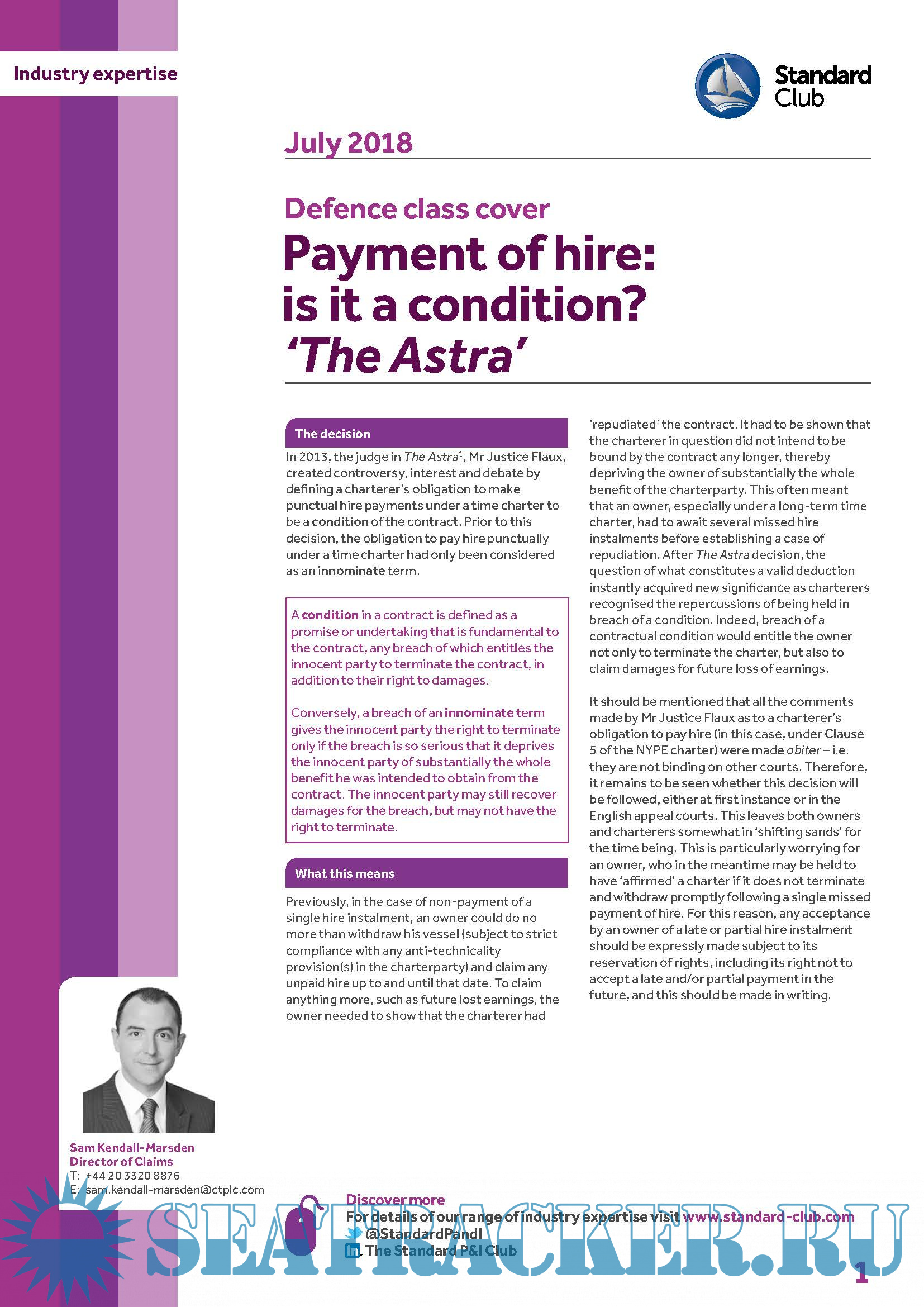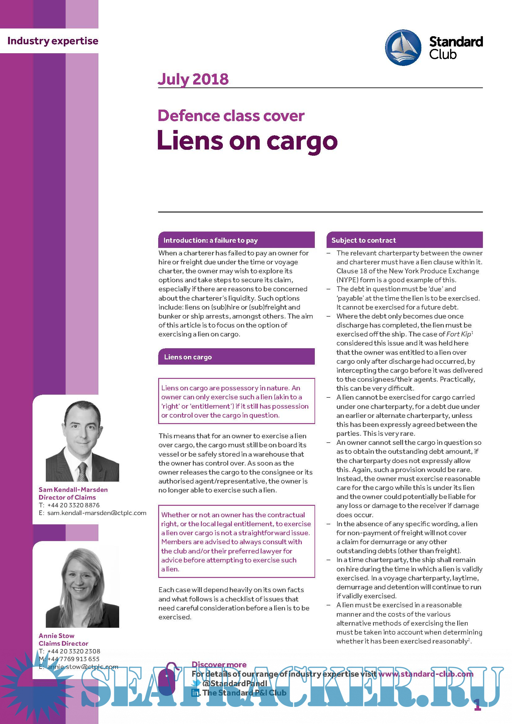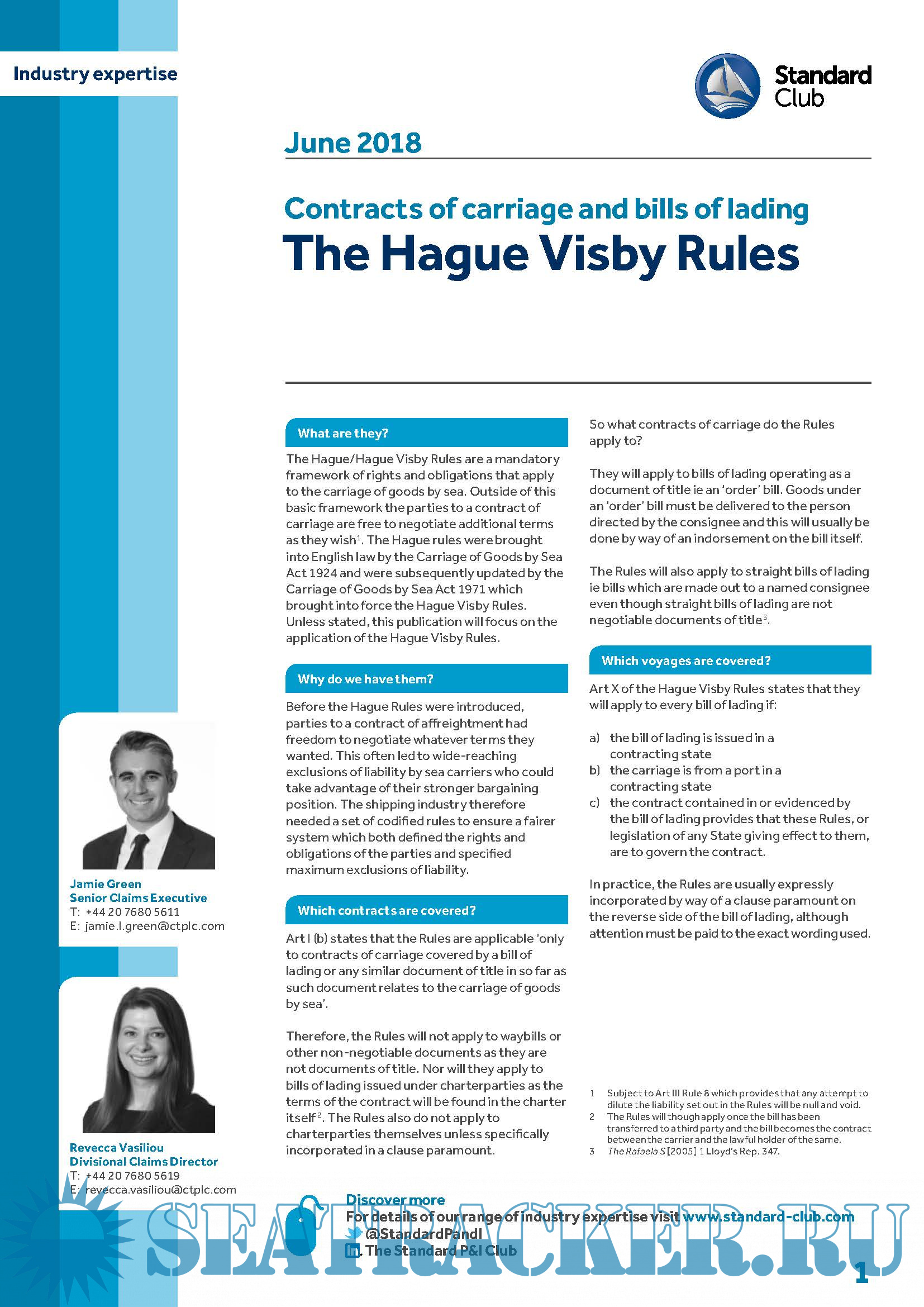 Description: This Download contains Industry expertise from The Standard P&I Club 2018 Bulletins relating to Defense class cover & Contracts of carriage and bills of lading The Hague Visby Rules. For a complete description refer to contents.