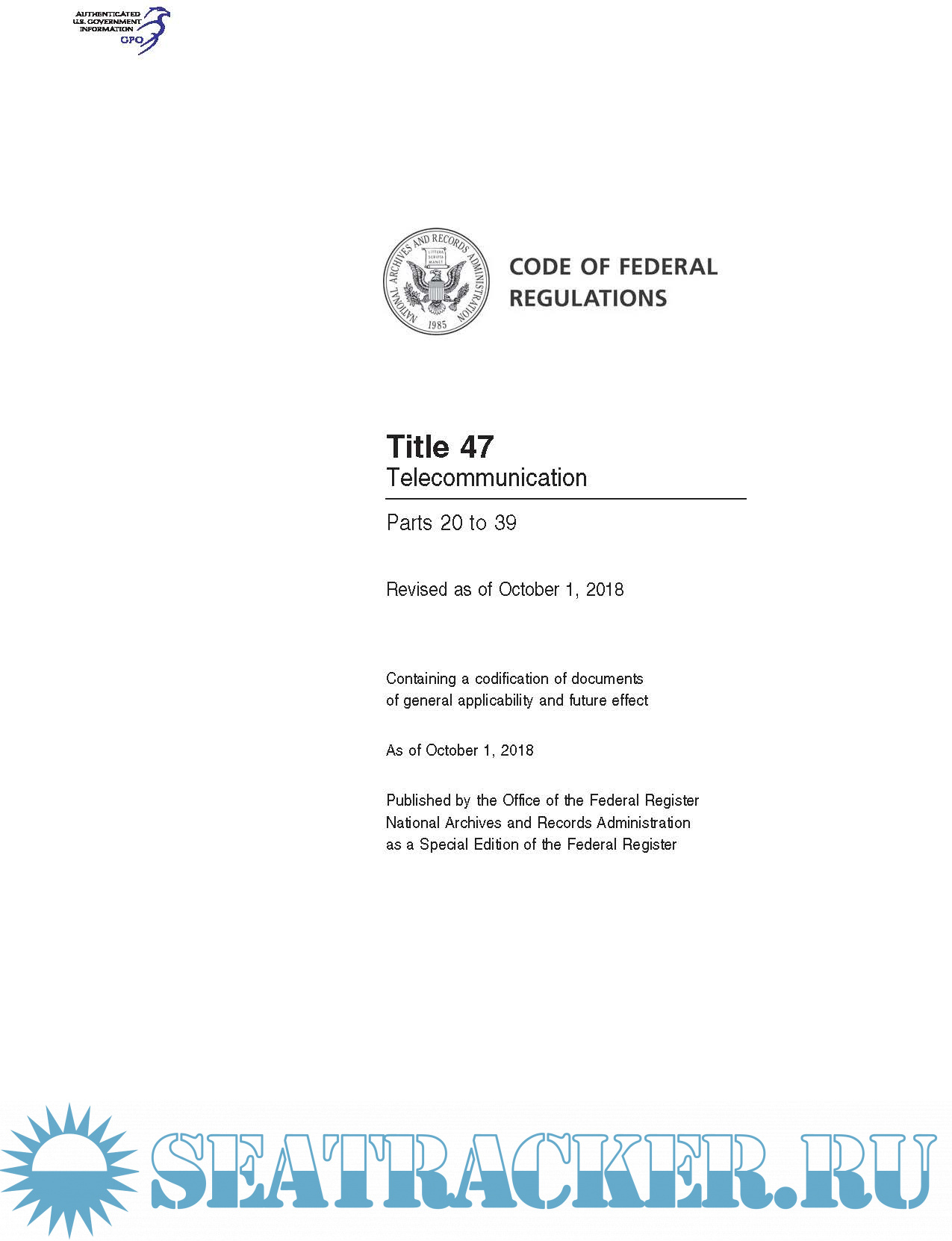Code of Federal Regulations CFR Title 47 Telecommunication Parts 20 to 39 Revised as of October 1, 2018