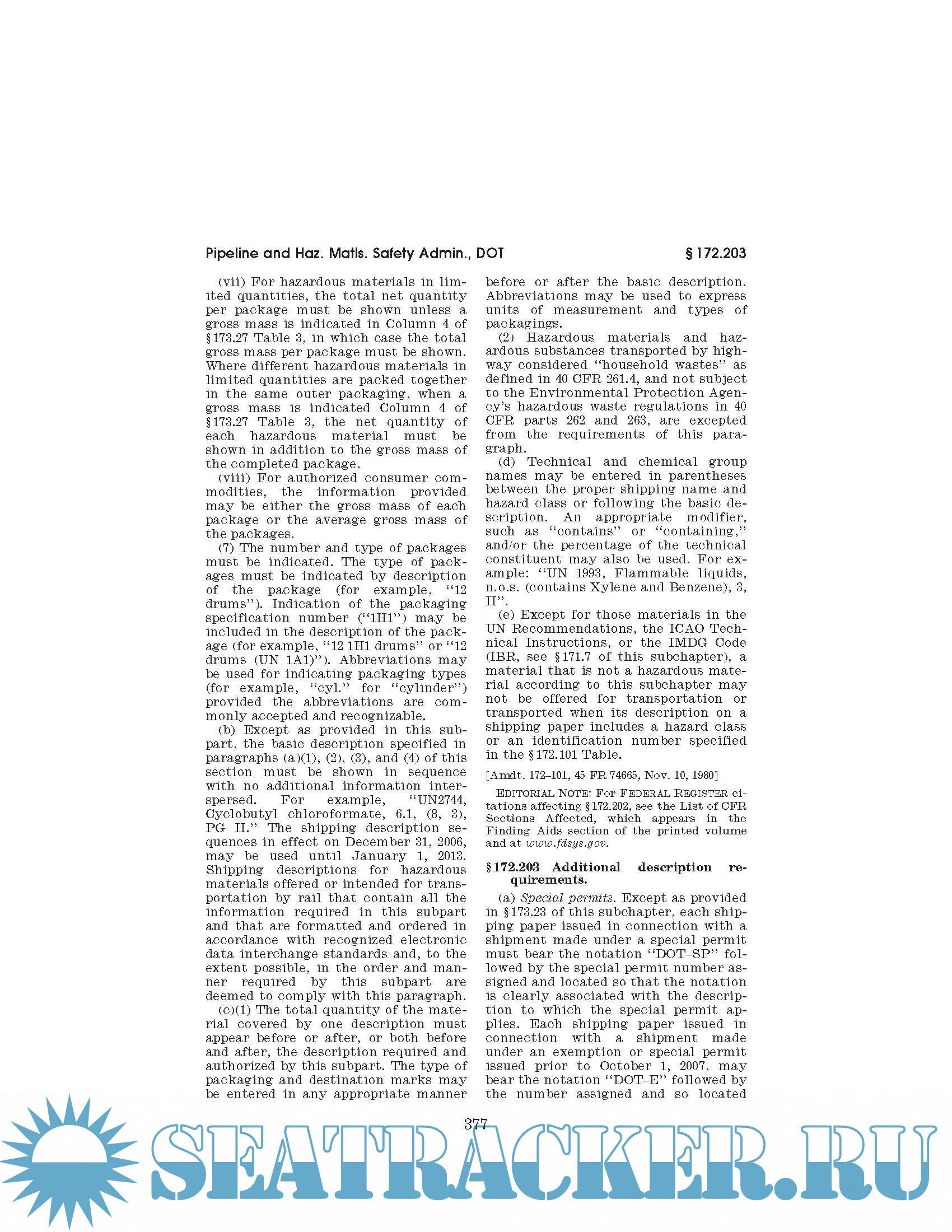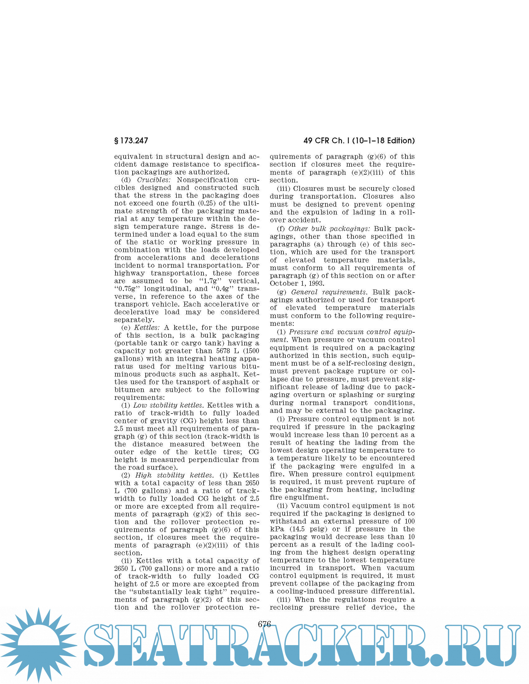 Full CFR 49 in effect as of Jan, 01, 2018 - see here