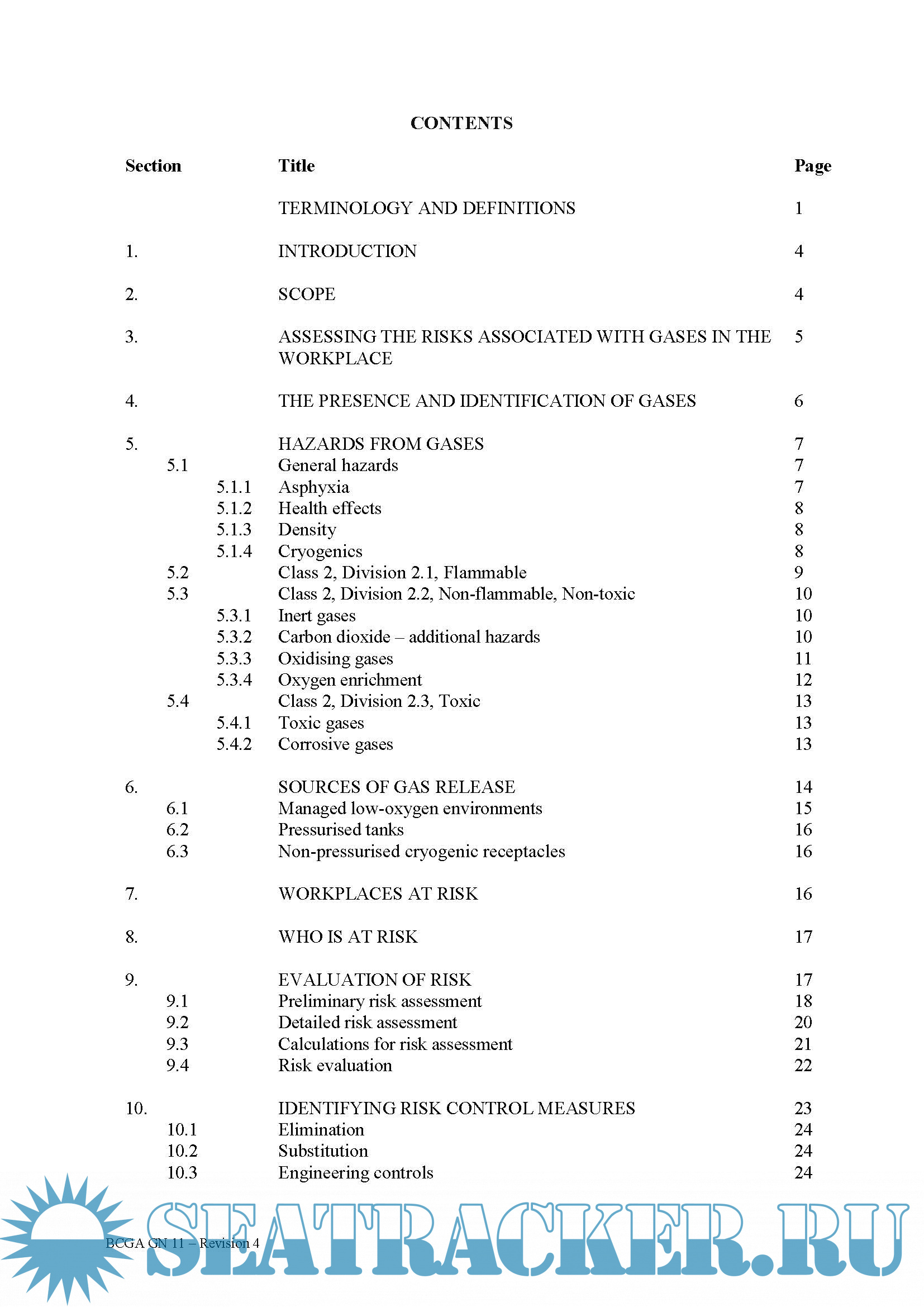 Guidance Note 11, The Management of Risk when Using Gases in Enclosed Workplaces, Revision 4