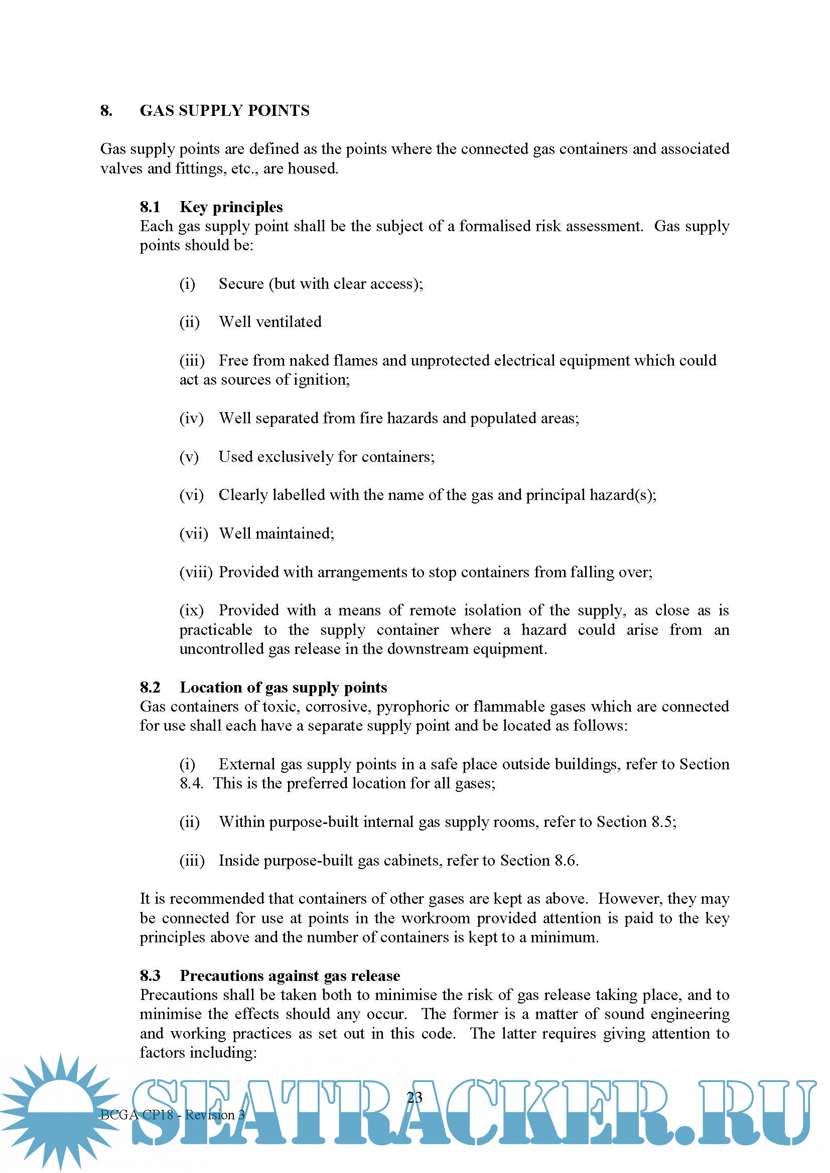 Code of Practice 18, The Safe Storage, Handling and Use of Special Gases, Revision 3