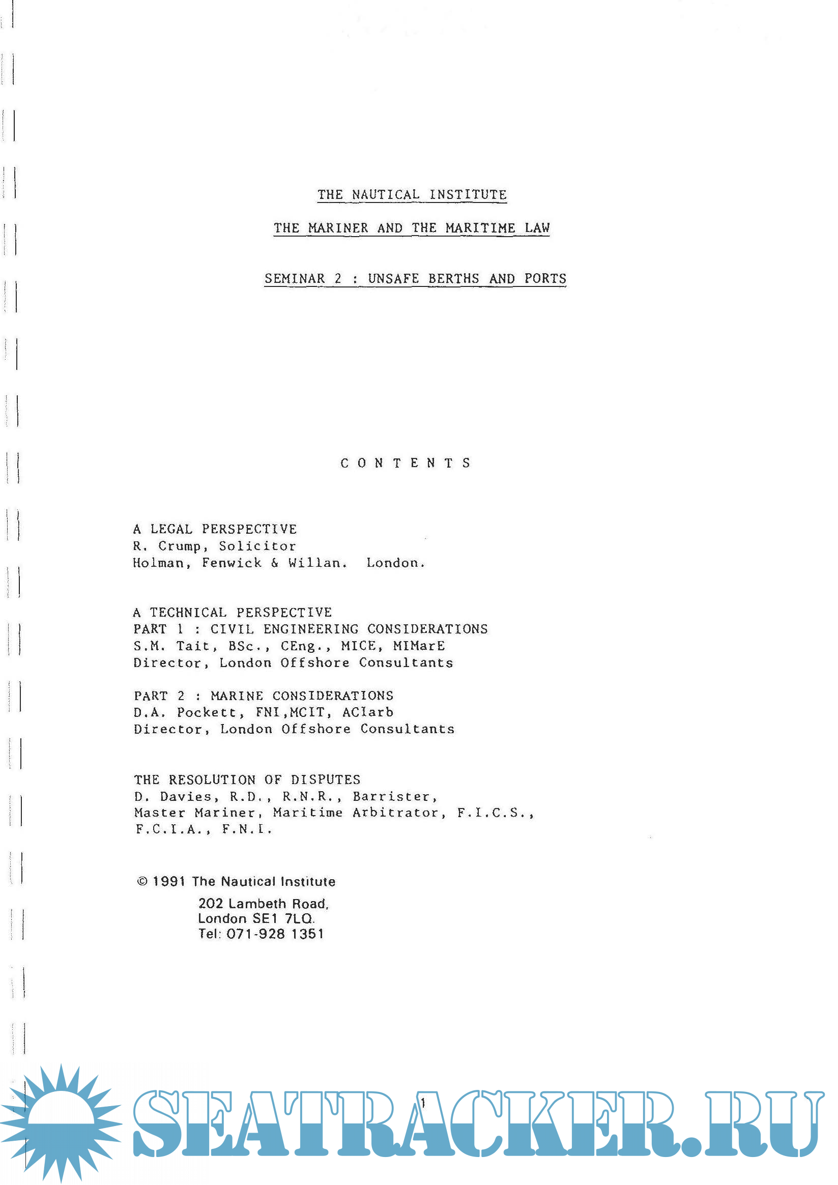 The Mariner and the Maritime Law: Seminar 2. Unsafe Berths and Ports Speakers' Papers