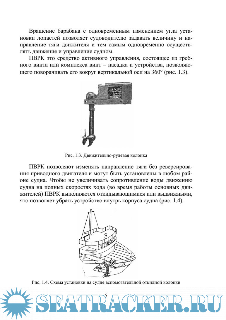 Описание: Изложены общие сведения о средствах управления судами, дано описание типичных конструкций подруливающих устройств и особенностей их эксплуатации.