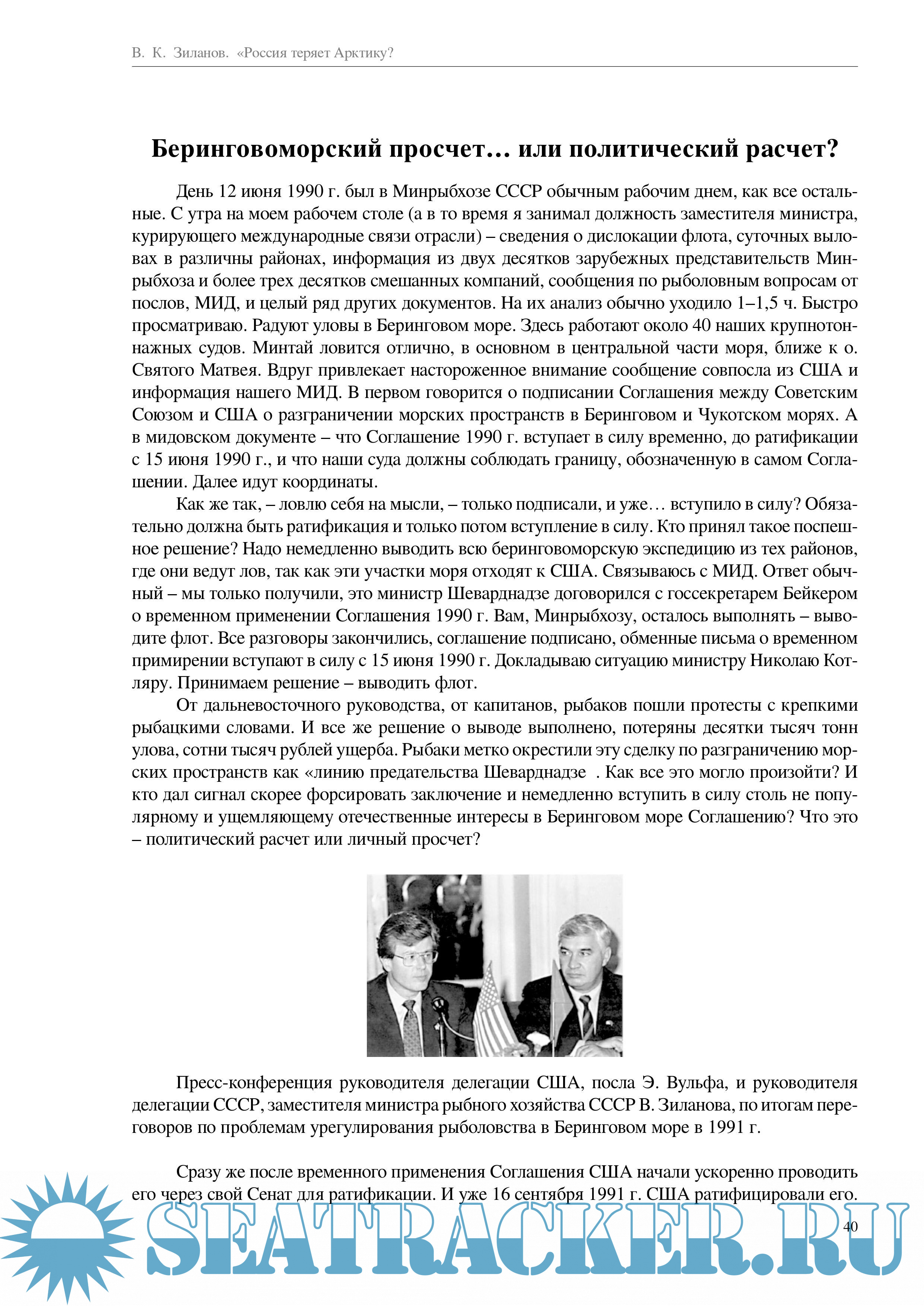 Автор – В. Зиланов – один из известнейших не только в России, но и за рубежом экспертов по морскому международному рыболовству, сотрудничеству в этой области, а также по проблемам оптимального использования ресурсов Мирового океана, включая район Арктики.