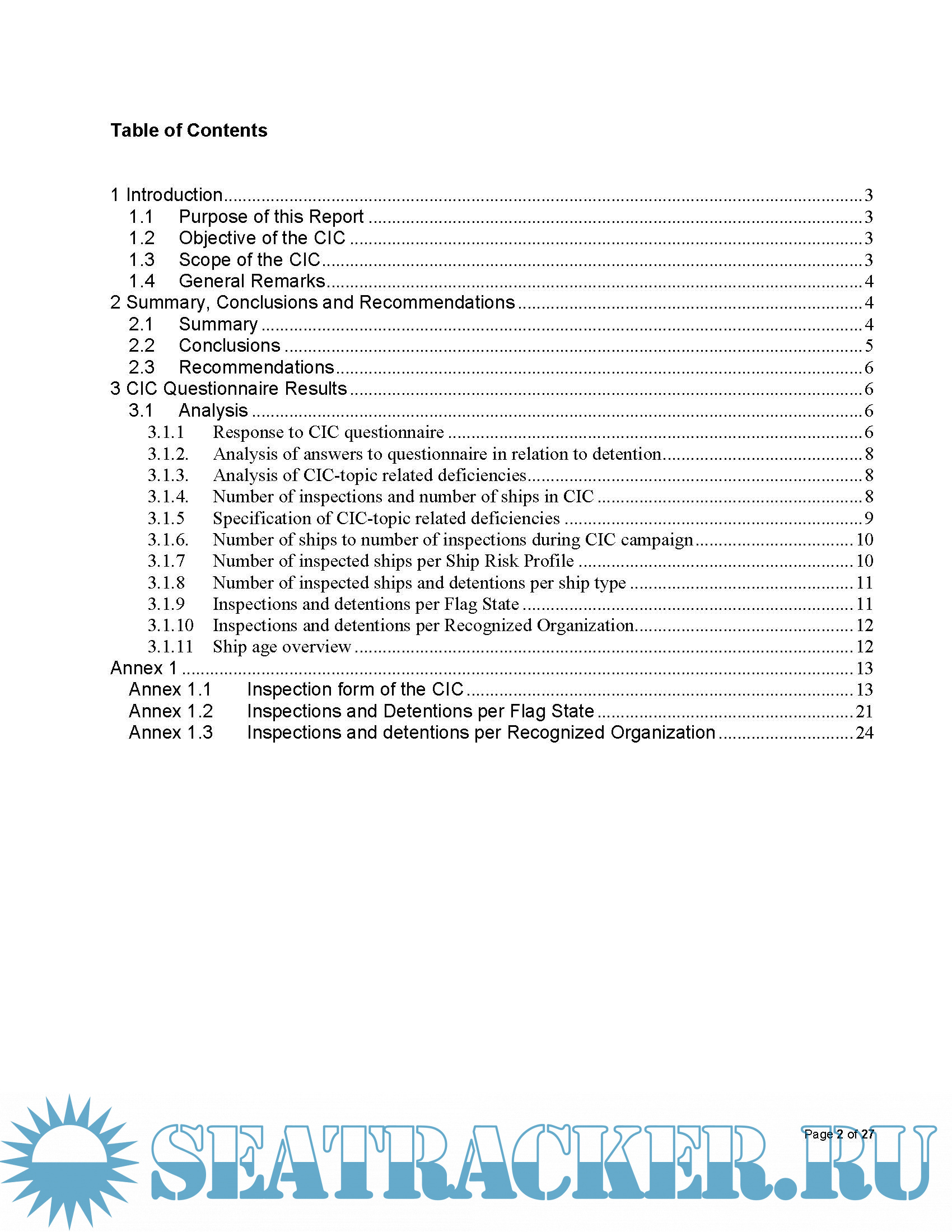 inspections. This report documents the results of the campaign for the Maritime Authorities of the