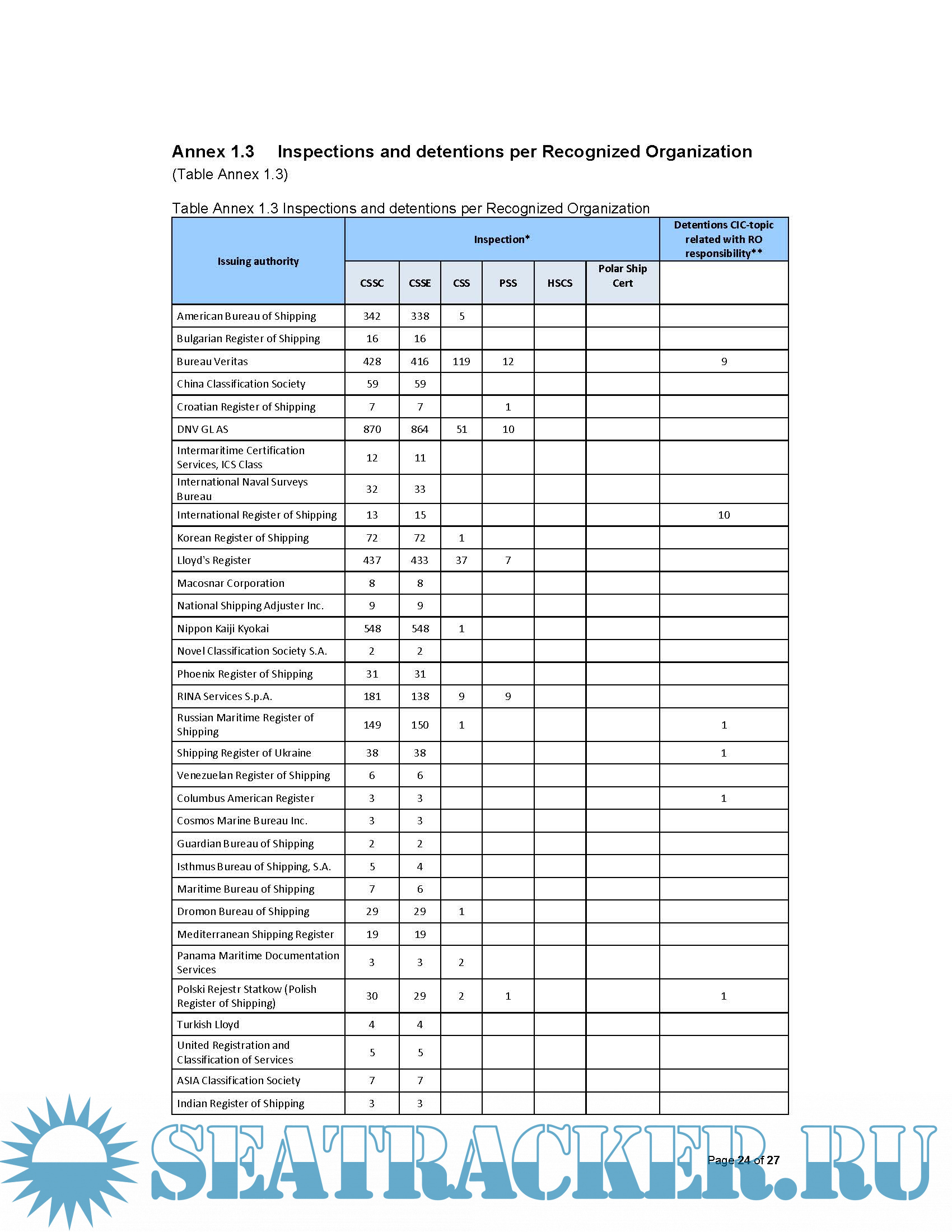 Paris MoU. Results for the Tokyo Maritime Authorities will be reported separately.