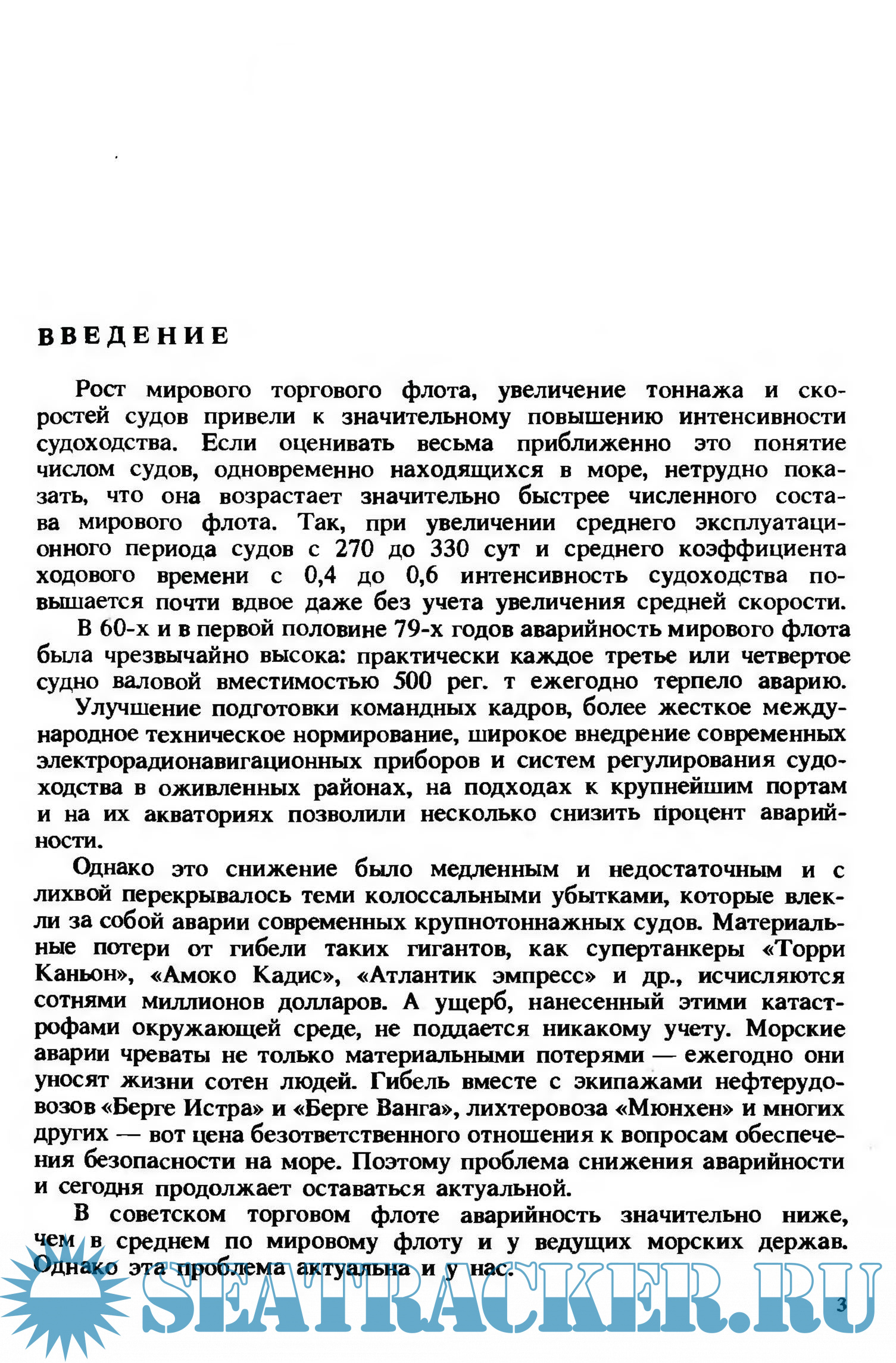 Введение Раздел I. ПРЕДОТВРАЩЕНИЕ ПОСАДОК СУДОВ НА МЕЛЬ И КАСАНИЙ ГРУНТА Глава 1. Анализ посадок судов на мель и касаний грунта 1.1. Географическое распределение посадок судов на мель и касаний грунта 1.2 Влияние внешних условий 1.3. Опасные периоды 1.4. Зависимость степени тяжести посадок на мель и касаний грунта от условий плавания Глава 2. Причины посадок на мель и касаний грунта 2.1. Неудовлетворительный контроль за местом судна 2.2. Потеря ориентировки 2.3. Неудовлетворительное наблюдение 2.4. Передоверие управления судном лоцману 2.5. Плавание без лоцмана в районе лоцманской проводки 2.6. Ошибочные действия при расхождении с судами 2.7. Ошибки рулевых и запоздалое возвращение на прежний курс 2.8. Чрезмерная скорость 2.9. Неправильное управление судном в штормовых условиях 2.10. Недооценка увеличения осадки на мелководье и при волнении 2.11. Передоверие управления судном вахтенному помощнику 2.12. Влияние «человеческого фактора» 2.13. Психологические предпосылки 2.14. Субъективные и объективные причины Раздел II. ПРЕДОТВРАЩЕНИЕ СТОЛКНОВЕНИЙ СУДОВ Глава 3. Анализ столкновений судов 3.1. Географическое распределение столкновений судов 3.2. Влияние внешних условий 3.3. Опасные периоды 3.4. Зависимость степени тяжести столкновений от условий плавания Глава 4. Причины столкновений судов в условиях нормальной видимости 4.1. Различная интерпретация ситуации на встречных судах 4.2. Ошибочная оценка ситуации и вероятных действий другого судна 4.3. Нарушения при обгоне 4.4. Чрезмерная скорость в стесненных условиях 4.5. Нарушения при плавании в узкостях 4.6. Неудовлетворительное наблюдение 4.7. Запоздалый маневр 4.8. Неиспользование или неправильное использование РЛС 4.9. Неучет или ошибочная оценка гидрометеорологических условий 4.10. Столкновения из-за потери управляемости Глава 5. Причины столкновений судов в условиях ограниченной видимости 5.1. Неудовлетворительное радиолокационное наблюдение 5.2. Неудовлетворительное наблюдение в сочетании с высокой скоростью 5.3. Бездействие при своевременном обнаружении 5.4. Неоправданный поворот влево, небольшие последовательные изменения курса и скорости 5.5. Психологические и объективные предпосылки столкновений Раздел III. ПРЕДОТВРАЩЕНИЕ НАВАЛОВ СУДОВ Глава 6. Анализ навалов судов 6.1. Географическое распределение навалов 6.2. Зависимость степени тяжести навалов от внешних условий Глава 7. Причины навалов судов 7.1. Чрезмерная скорость 7.2. Передоверие управления судном лоцману 7.3. Необоснованный риск 7.4. Неудовлетворительное наблюдение 7.5. Отказ двигателей, ошибки механиков 7.6. Недооценка гидрометеорологических условий стоянки Раздел IV. РЕКОМЕНДАЦИИ ПО ПРЕДОТВРАЩЕНИЮ НАВИГАЦИОННЫХ АВАРИЙ Глава 8. МППСС-72 8.1. Особенности применения правил 8.2. Некоторые особенности судебной и арбитражной практики Глава 9. Организация наблюдения 9.1. Обязанности вахтенного помощника 9.2. Расстановка наблюдателей 9.3. Периодичность радиолокационного наблюдения, выбор шкал и просмотр теневых секторов Глава 10. Выбор величины безопасной скорости в зависимости от качества и полноты наблюдения 10.1. Критерий безопасной скорости 10.2. Радиолокационное наблюдение и безопасная скорость Глава 11. Маневрирование судов 11.1. На виду друг у друга 11.2. В условиях ограниченной видимости Глава 12. Организация вахты 12.1. Прием-сдача вахты 12.2. Обстановка на мостике 12.3. Сист