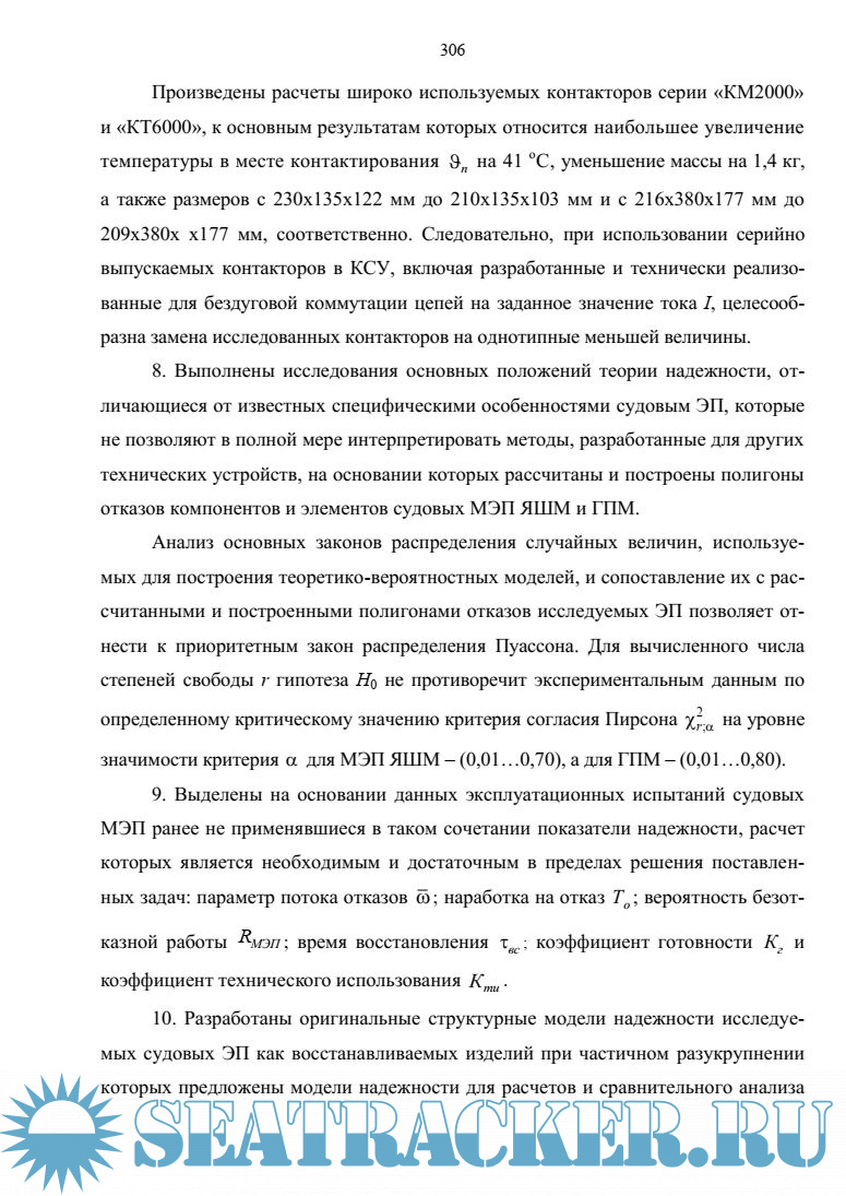 К практической значимости работы относятся: полученные впервые обобщенные результаты опыта эксплуатации автоматизированных ЭП судов Дальневосточного бассейна; предложенное комбинированное управление, повышающее надежность судовых МЭП, универсальность технических решений которого, имеющих внедрения заключена в возможности применения как на стадии проектирования и изготовления ЭП, так и находящихся в эксплуатации; результаты аналитических расчетов и экспериментальных исследований несимметричных режимов работы трехфазных АД, позволяющие оценить их опасность; изготовленные и внедренные технические изделия, повышающие энергетические показатели АД; разработанные инженерные методики и алгоритмы для определения эффективности использования ККА в специальных режимах, алгоритмы расчетов и программное обеспечение; полученные в результате расчетов по разработанным моделям количественные показатели надежности традиционных судовых МЭП, включающих РКСУ, и ЭП с КСУ.