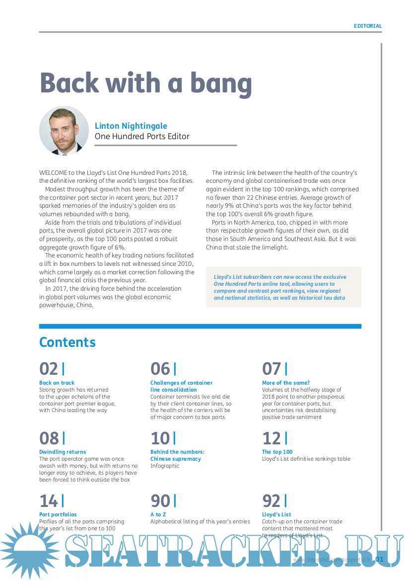 Description: The 2018 edition of Lloyd’s List’s One Hundred Container Ports shows that the industry’s elite port facilities handled a combined 588m teu in 2017, representing healthy 6% volume growth on the previous year.