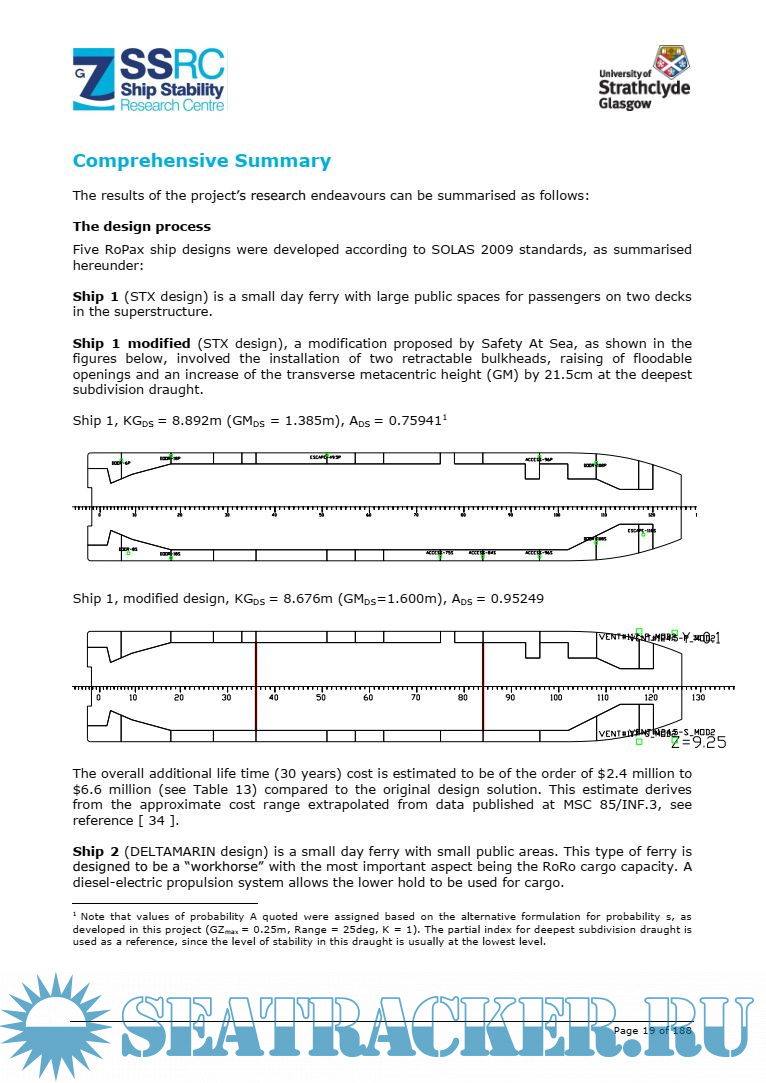 This report summarises the study on the stability of RoRo passenger (RoPax) ships performed between 17 December 2009 and 15 June 2011.
