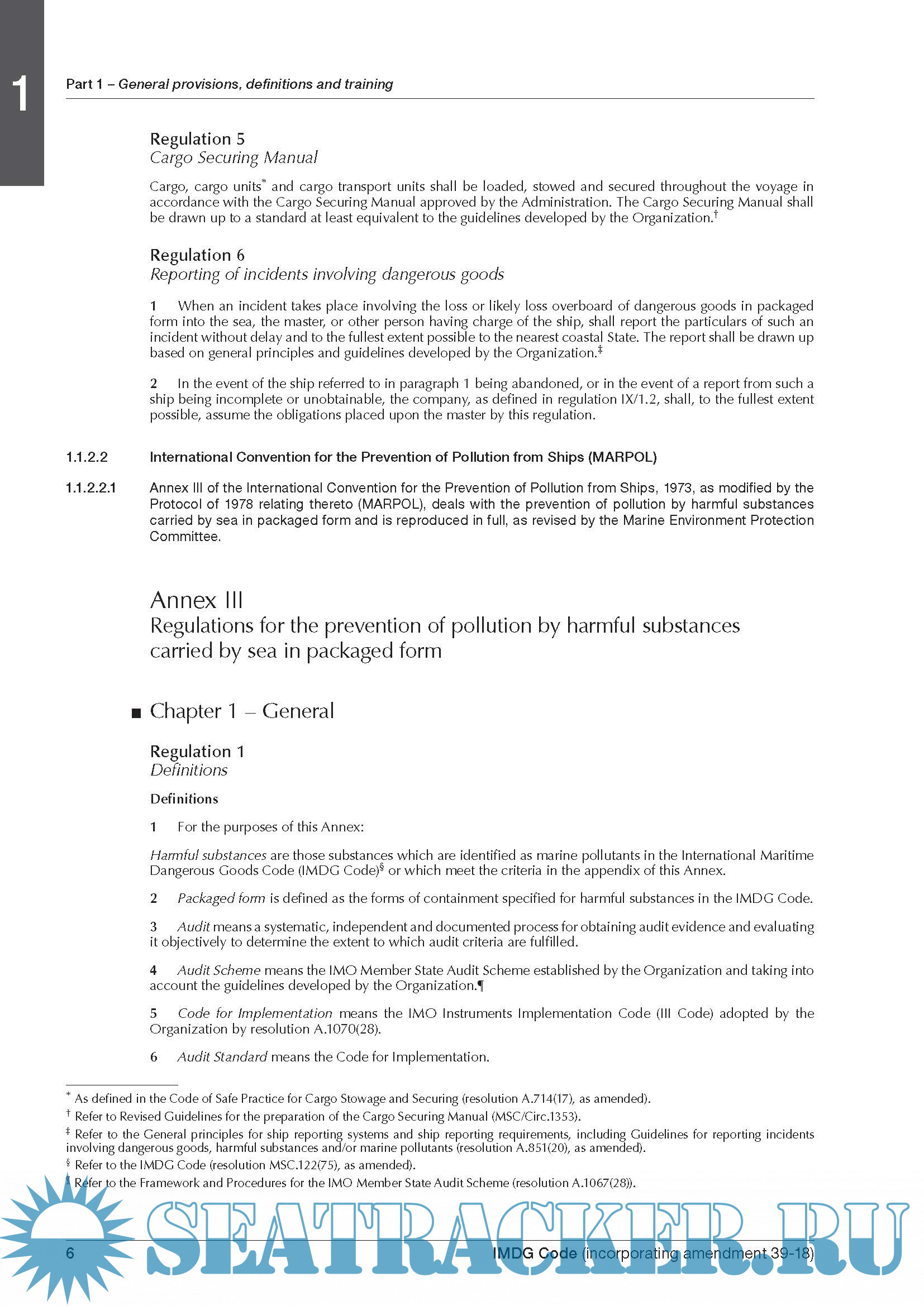 Description: The IMDG Code has undergone many changes over the years, in both format and content, in order to keep up with the rapid expansion of the shipping industry. Amendment 39-18 includes revisions to various sections of the Code and to transport requirements for specific substances. It was adopted by IMO’s Maritime Safety Committee (MSC) at its ninety-ninth session in May 2018.