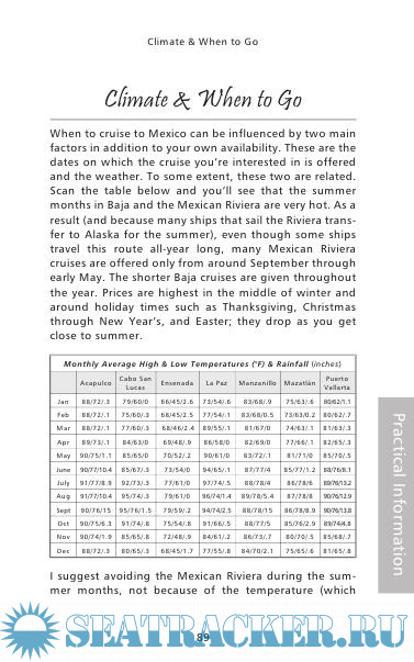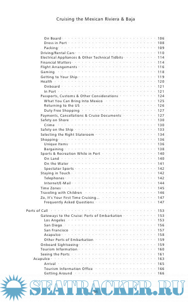 As you peruse this book you’ll learn that there are many cruise lines offering service to the Mexican Riviera and Baja. I strongly encourage you to visit your local travel agent and grab a stack of cruise brochures. In combination with the information in this book, they will further help you to decide which ship and itinerary is right for you. Always remember, however, that those glossy brochures are carefully designed by slick marketing experts to get your business. Be a thoughtful consumer.