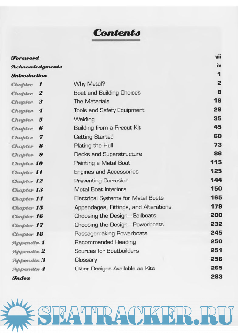 Year: 2001 Language: english Author: Roberts-Goodson Bruce Publisher: McGraw-Hill Edition: Revised and expanded ISBN: 0-07-136444-7 Format: PDF Quality: Scanned pages Pages count: 300 Description: For anyone even considering building, buying, or renovating a metal boat, this must-have resource provides a thorough overview of steel, aluminum, and copper-nickel boat construction. Written by one of the world’s most experienced small-craft designers, Metal Boats explains the advantages of metal; how to buy it; how to cut and weld it; how to build or refurbish hulls, decks, and superstructures with it; and how to finish it. The book also covers engineering for metal boats, corrosion prevention, interior design and construction, electrical systems, appendages, fittings, and a portfolio of designs for metal powerboats and sailboats