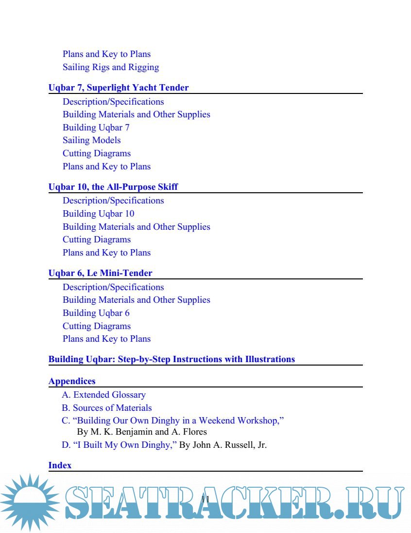 Year: 2014 Language: english Author: Redjeb Jordania Genre: Practical guide Publisher: International Marine/Ragged Mountain Press ISBN: 978-0-07-182965-6 Format: PDF + epub Quality: eBook Pages count: 191 Description: In following five easy steps you can build yor own boat: — CUT all parts to exact shape with the help of our cutting diagrams. — EPOXY fiberglass tape on the outside of the seams. — STITCH the hull panels together with metal or plastic wire-ties. — SNIP OFF the wire ends on the outside and fair. — GLUE the panels together by spreading epoxy putty over the wires In just a long weekend or a few evenings, you can realize your boat dreams with the guidance and detailed instructions offered in Building the Uqbar Dinghy. Boatbuilder/designer Redjeb Jordania walks you through the building process with advice on materials, techniques, tricks and traps, and more. Inside you will find: — Plans and cutting diagrams for all models, including rowing as well as sailing versions — A captioned Visual Guide that will show you all the steps and illustrates vividly the techniques used in building an Uqbar — Detailed step-by-step instructions — First-hand descriptions from boat enthusiasts of their experiences building the dinghy on their own to give you the confidence that you can do it, too — A glossary of terms related to the building process — A list of suppliers so you can easily find what you need